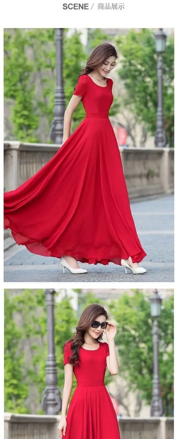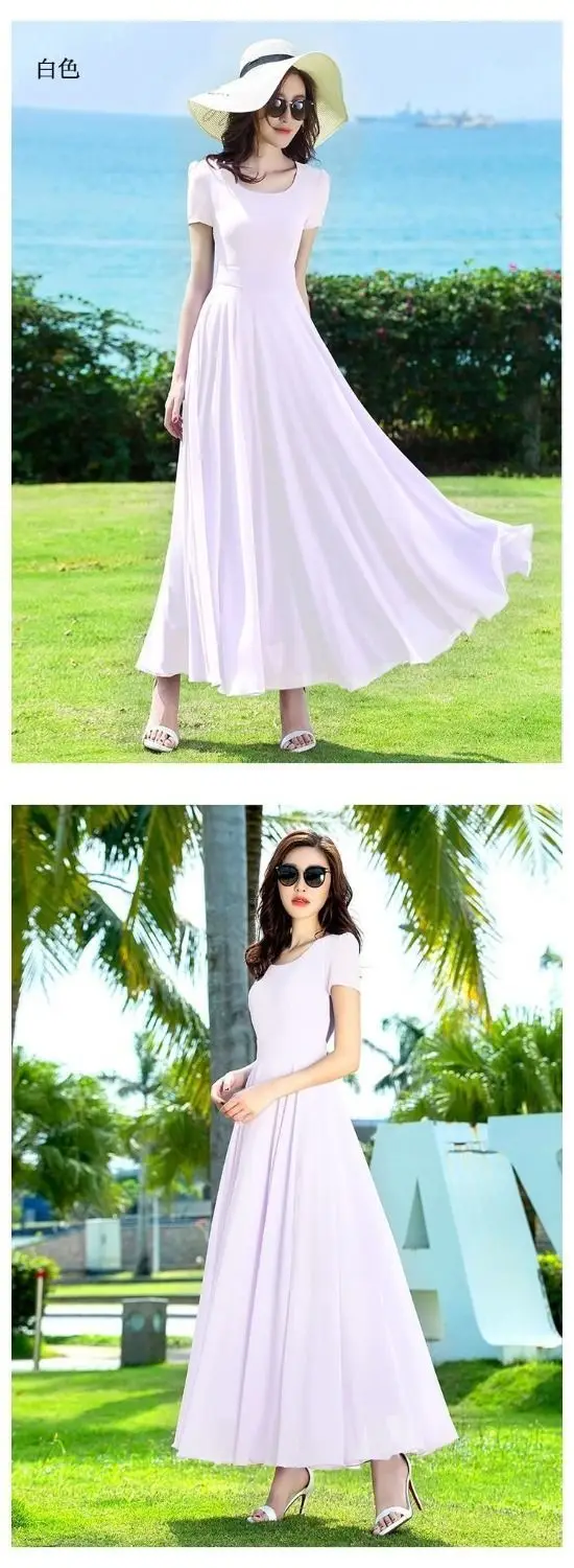 Dress Womens Short Sleeve Solid Elegant Baggy 5XL Sundress Ladies Beach Wear Slim High Waist Chiffon Breathable Ankle-length Ins