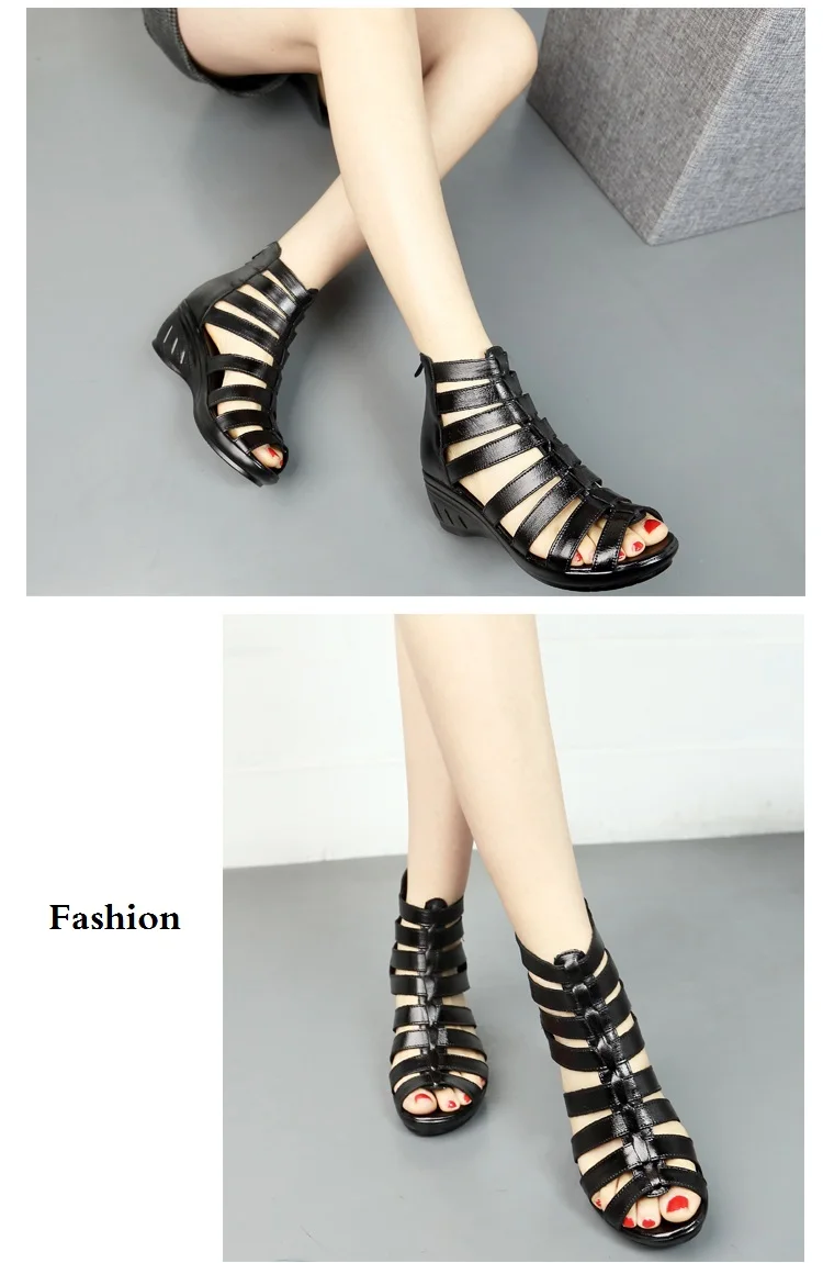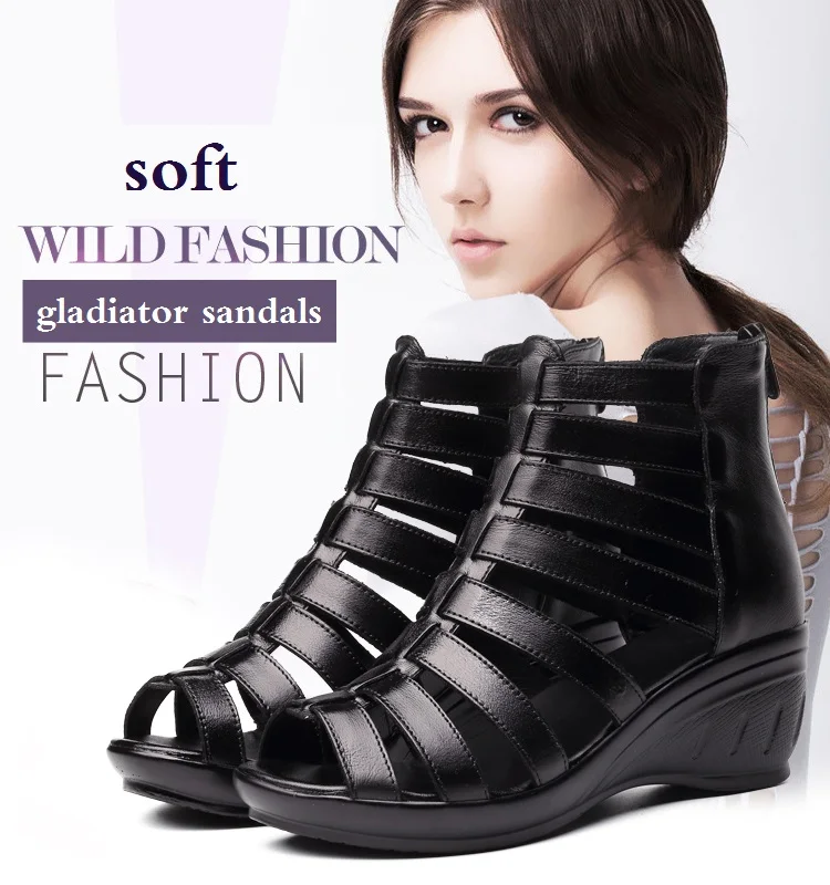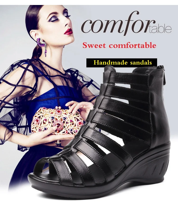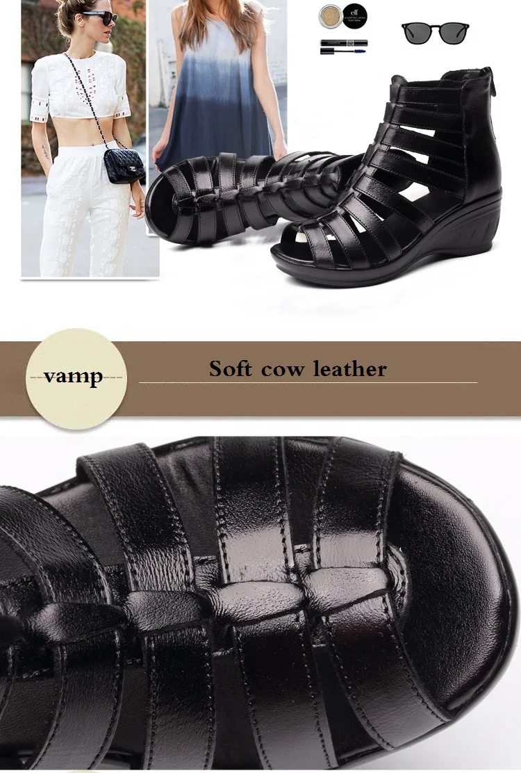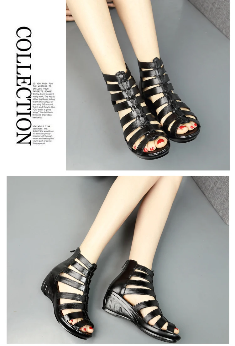 DRKANOL 2021 Women Gladiator Sandals Sexy Cutout Genuine Cow Leather Wedge Sandals Summer High Heels Women Shoes Zapatos Mujer