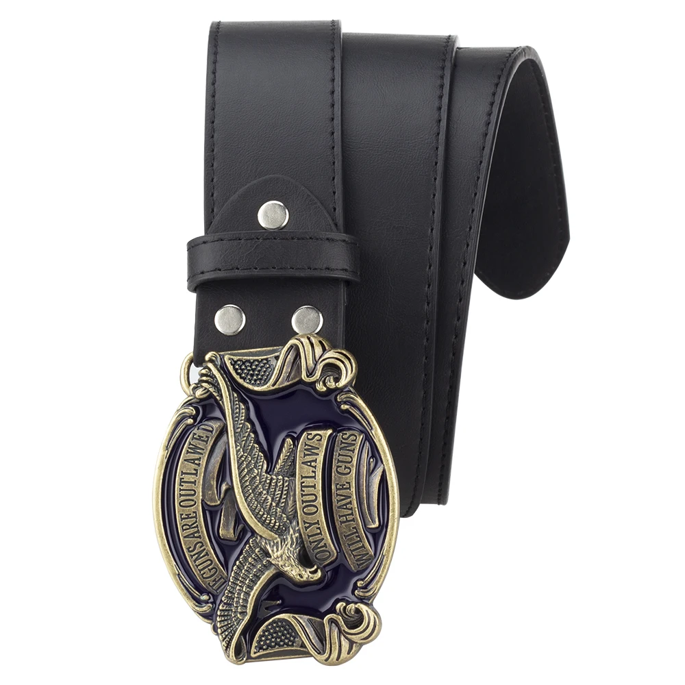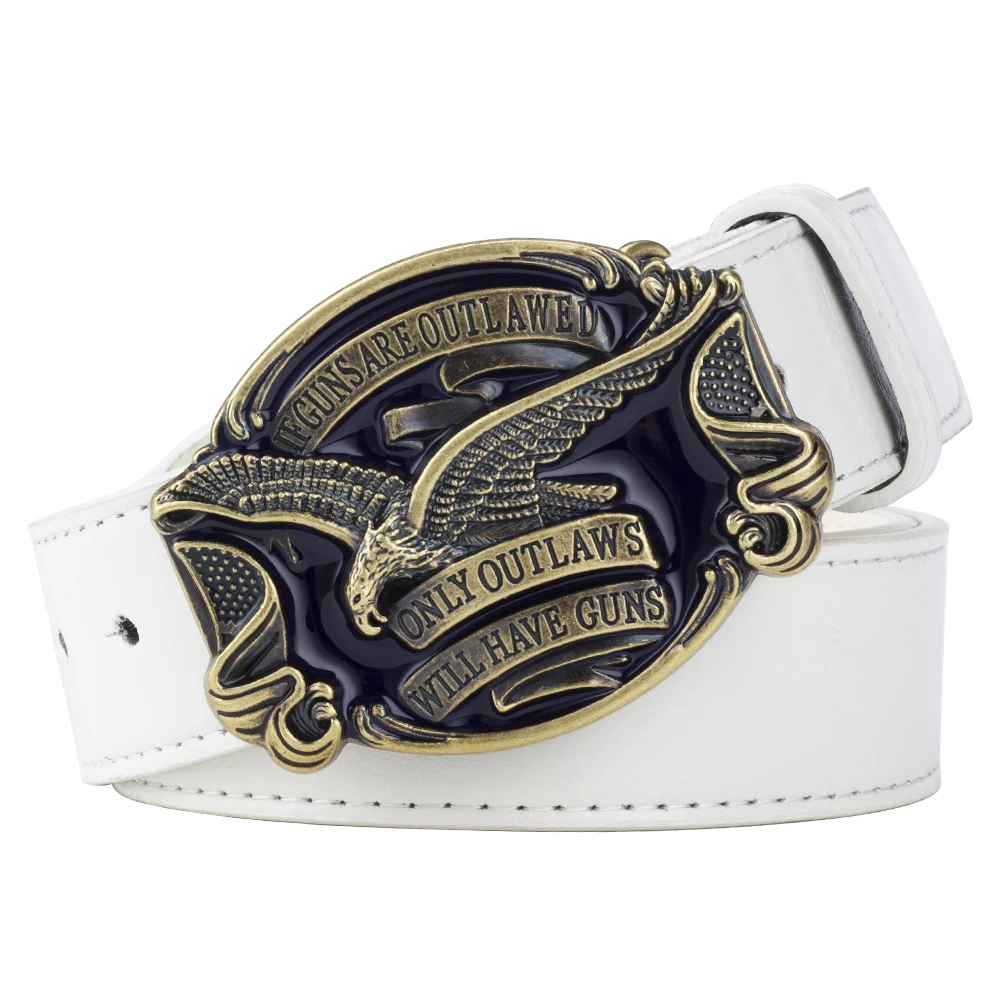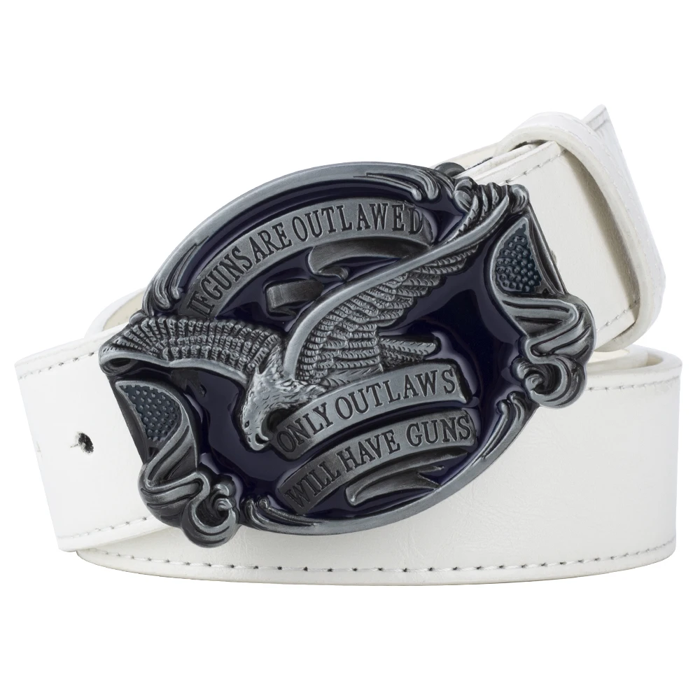 Eagle Belt for Men Jeans ONLY OUTLAWS WILL HAVE GUNS Metal Buckle Cowboy
