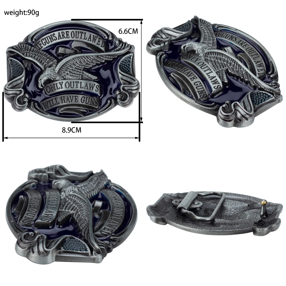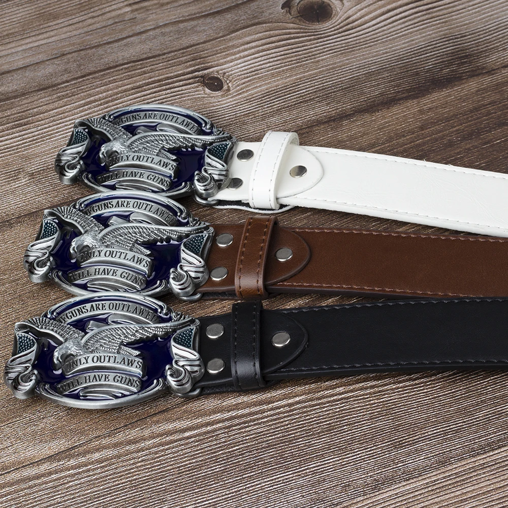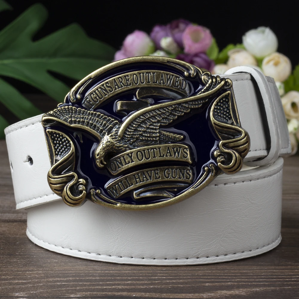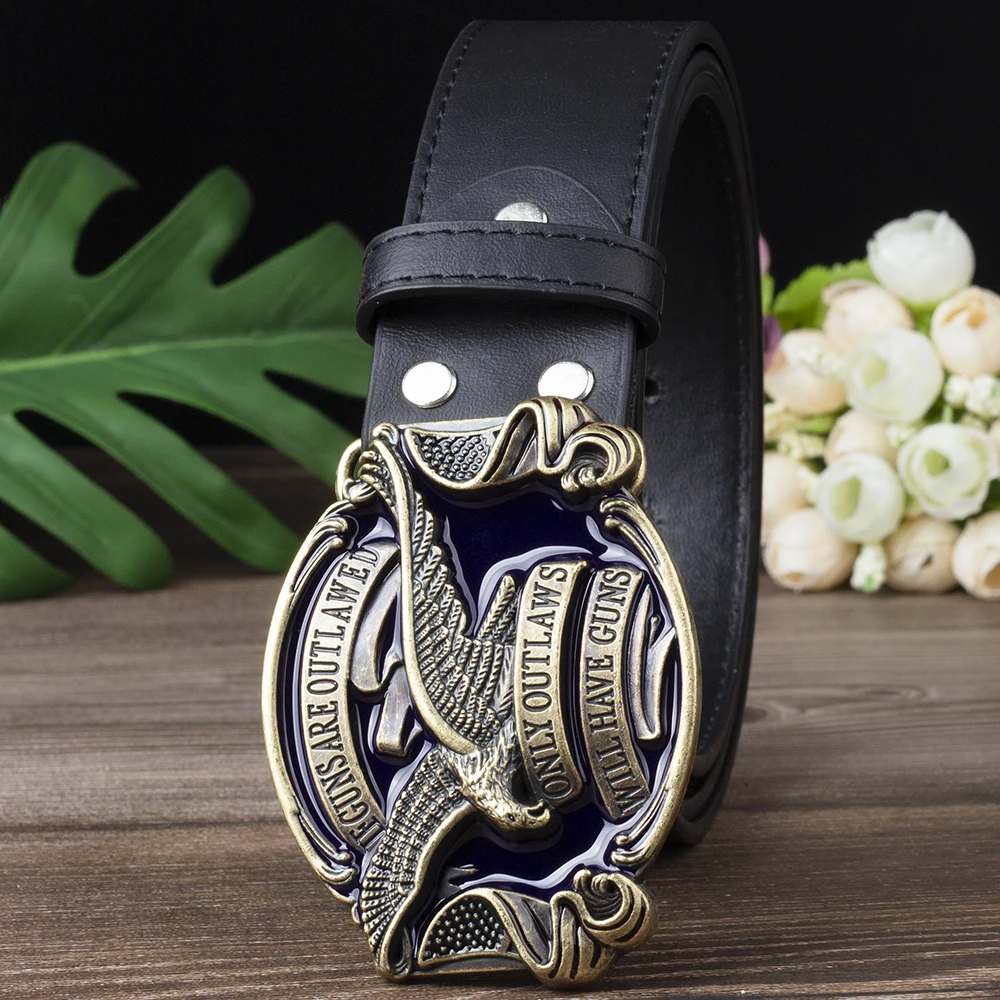 Eagle Belt for Men Jeans ONLY OUTLAWS WILL HAVE GUNS Metal Buckle Cowboy