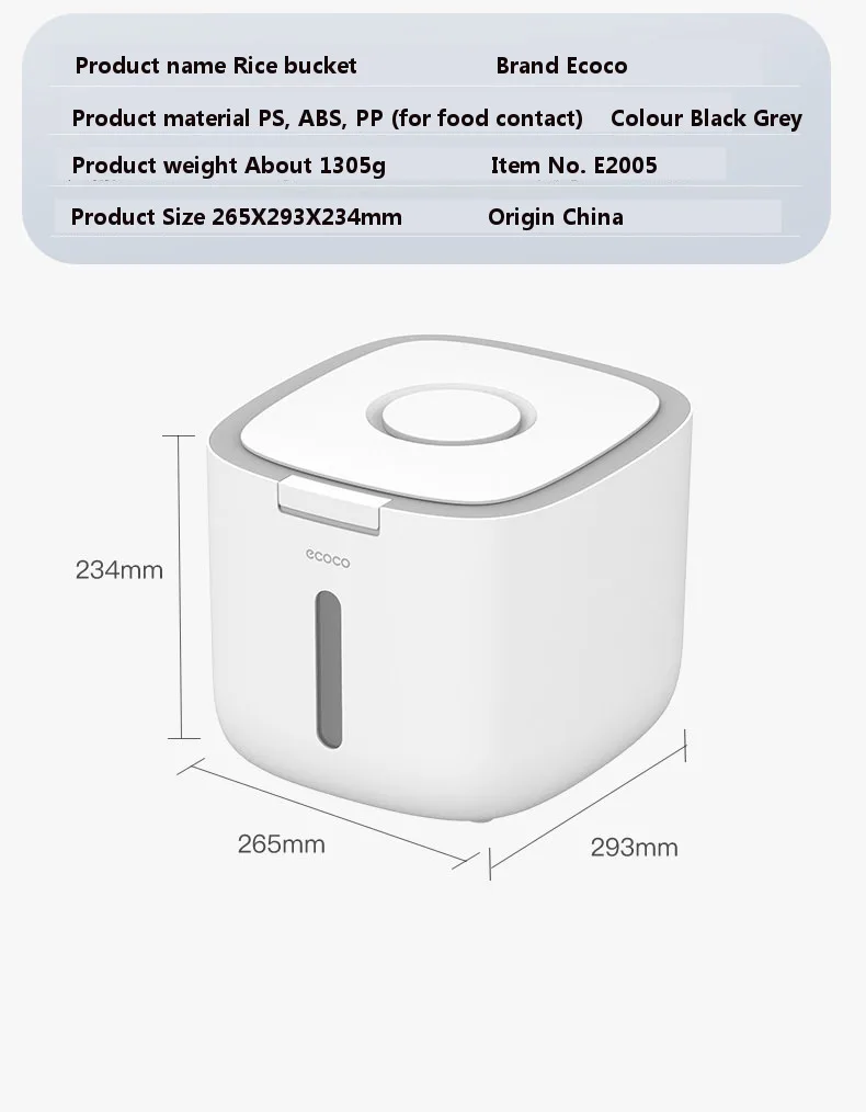 ECOCO 5/10KG Kitchen Nano Bucket Insect-proof Moisture-proof Sealed Rice Bucket Grain Pet Food Storage Container Rice Box