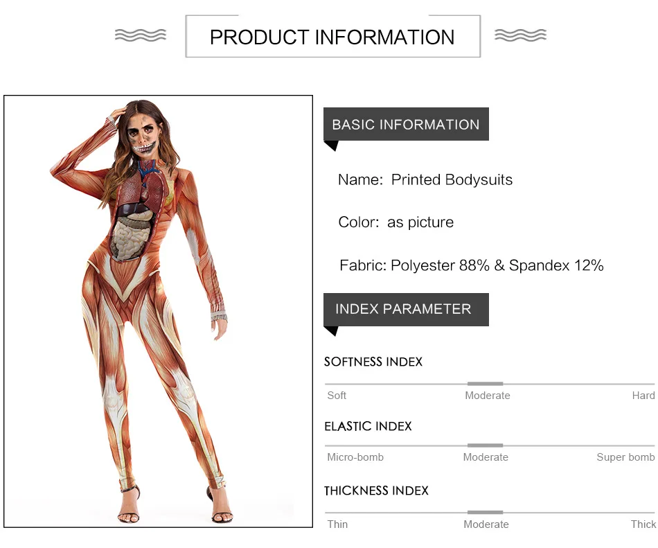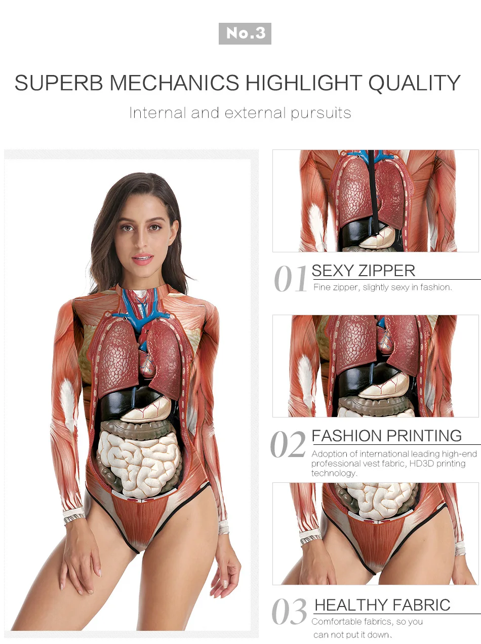 Elastic Human Anatomy Bodysuit Halloween 3D Print Party Muscle Printed Jumpsuit Cosplay Body Bodysuit Costumes