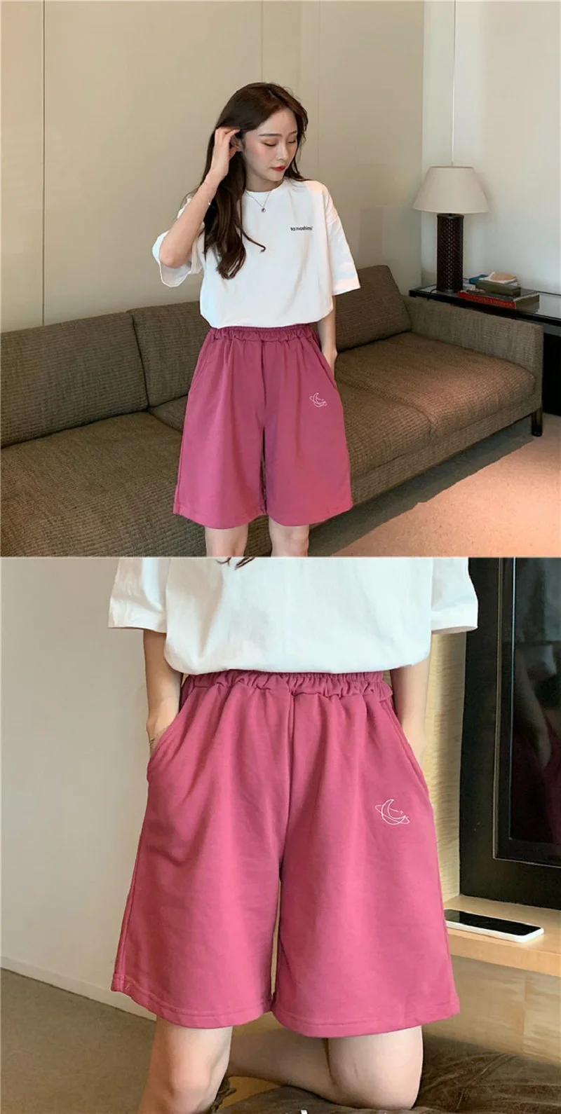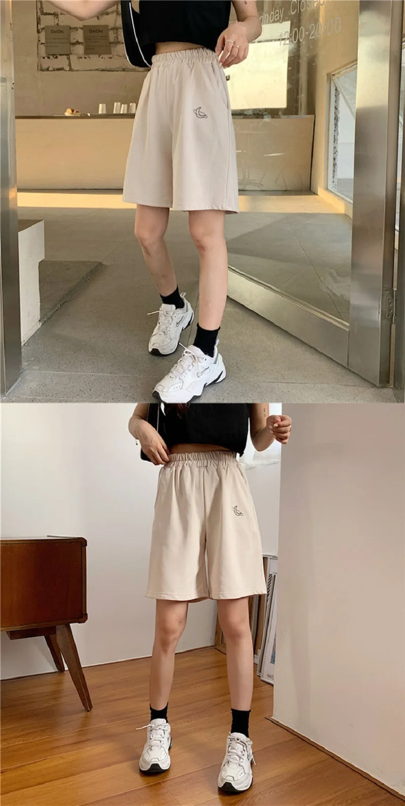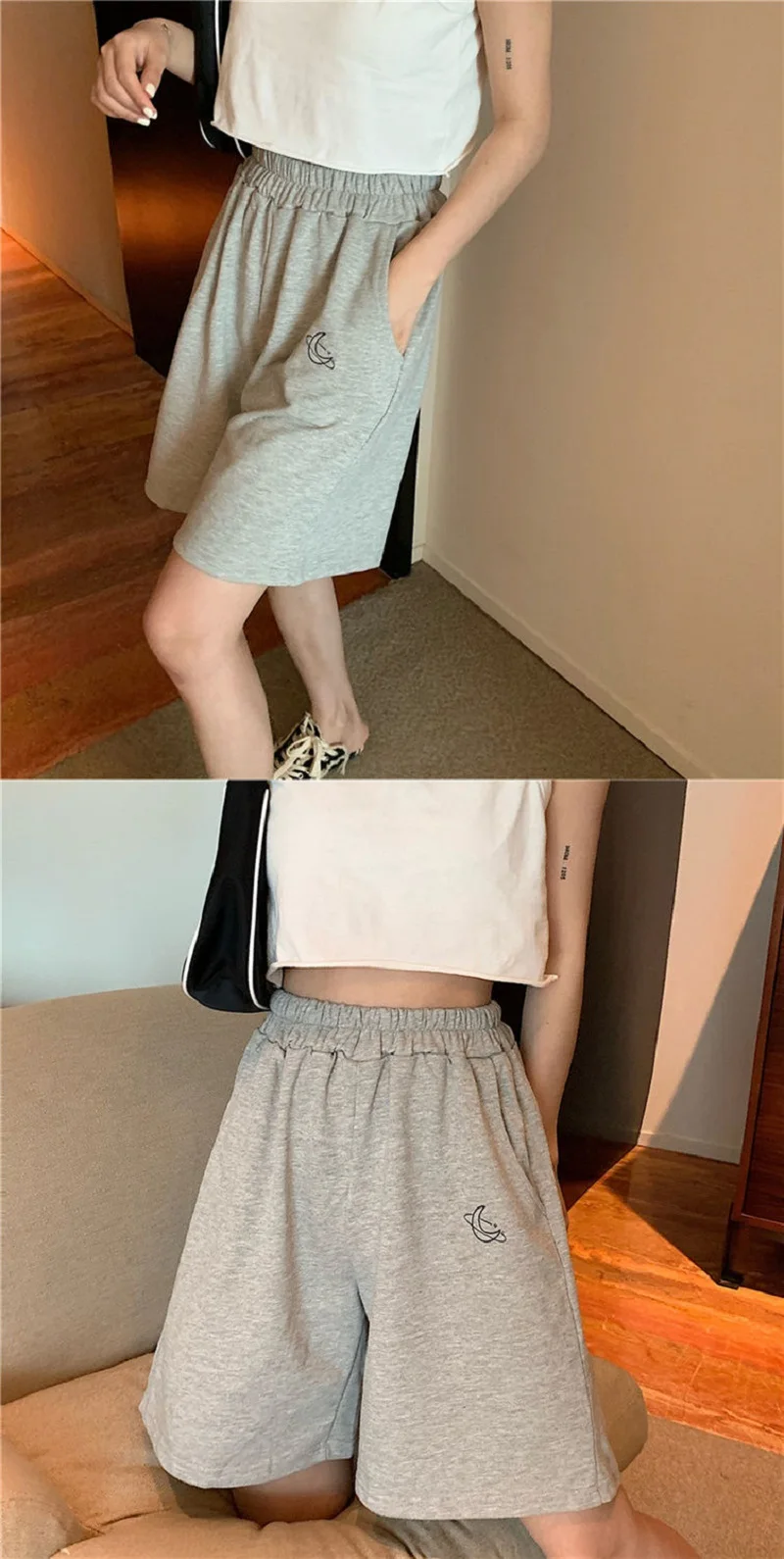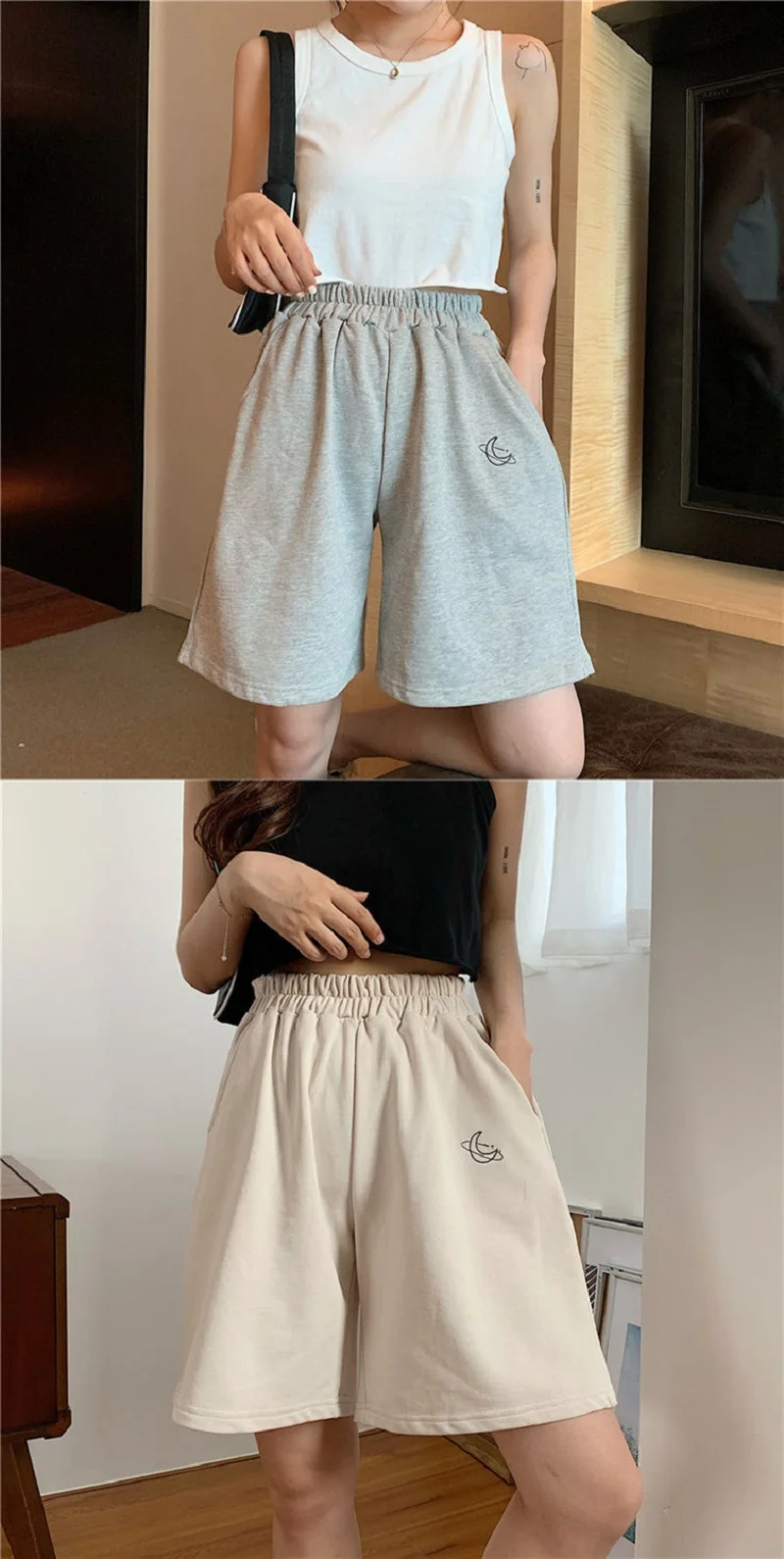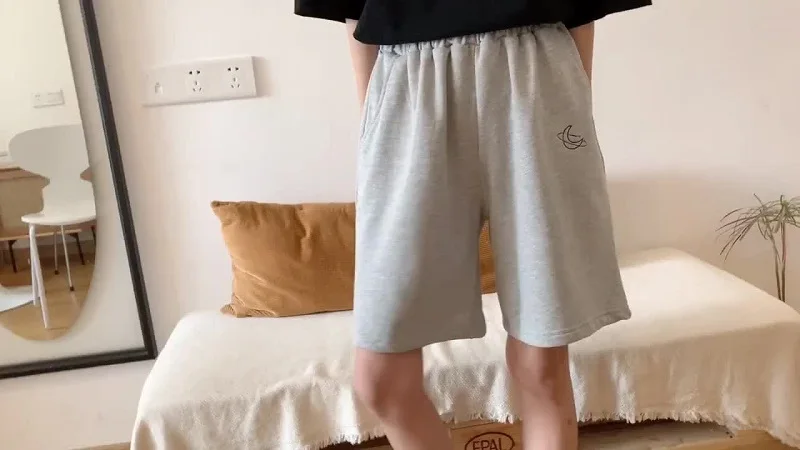 Elastic Waist Casual Beach Party Korean version clothing size High waist Moon embroidery movement shorts women Summer