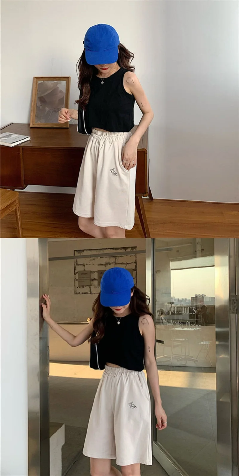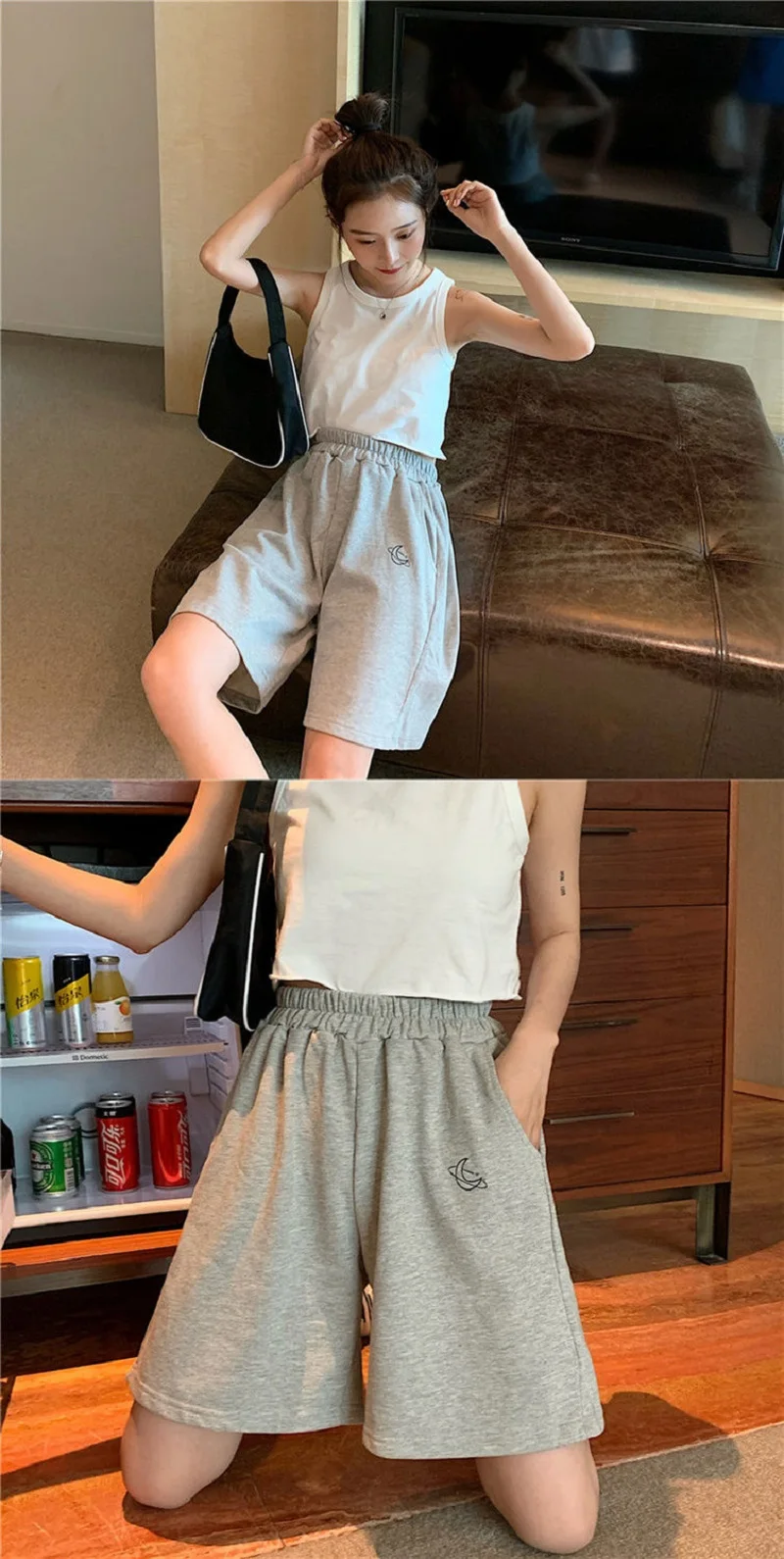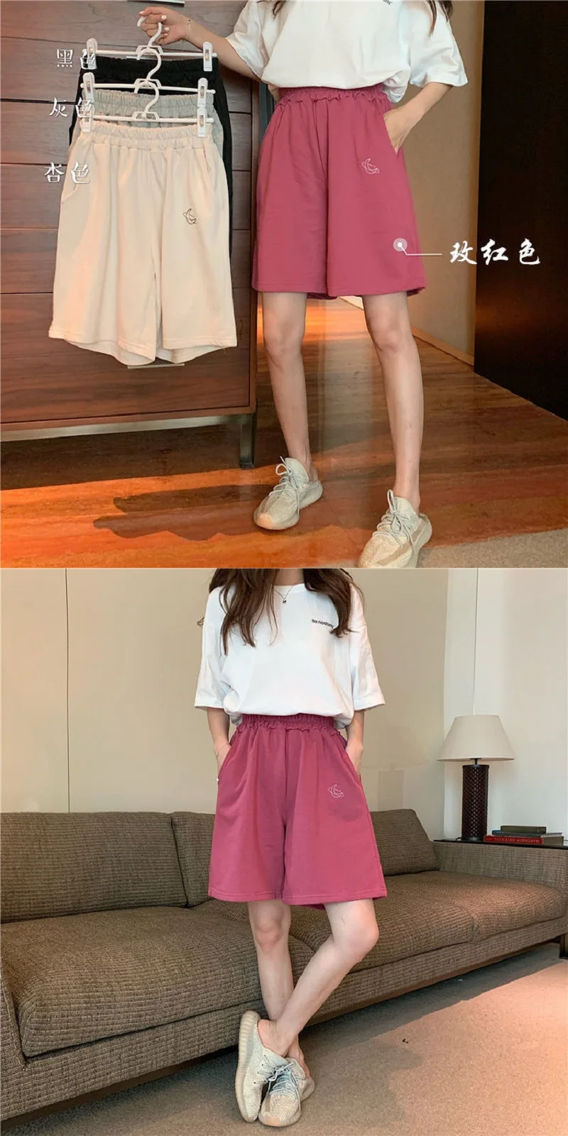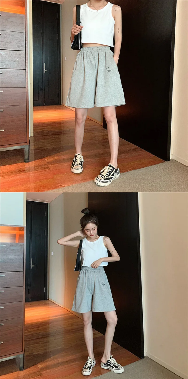 Elastic Waist Casual Beach Party Korean version clothing size High waist Moon embroidery movement shorts women Summer