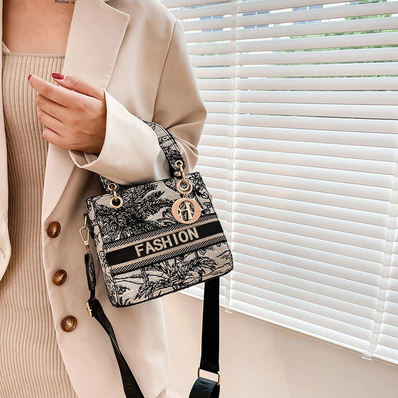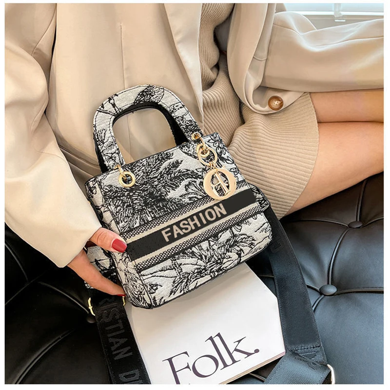 Embroidery Princess Diana bag metal pendant 2021 new handbag small square bag retro net red shoulder bag letter messenger bag