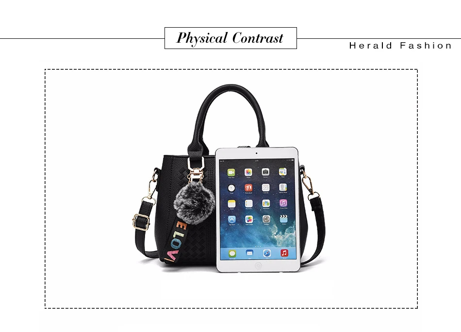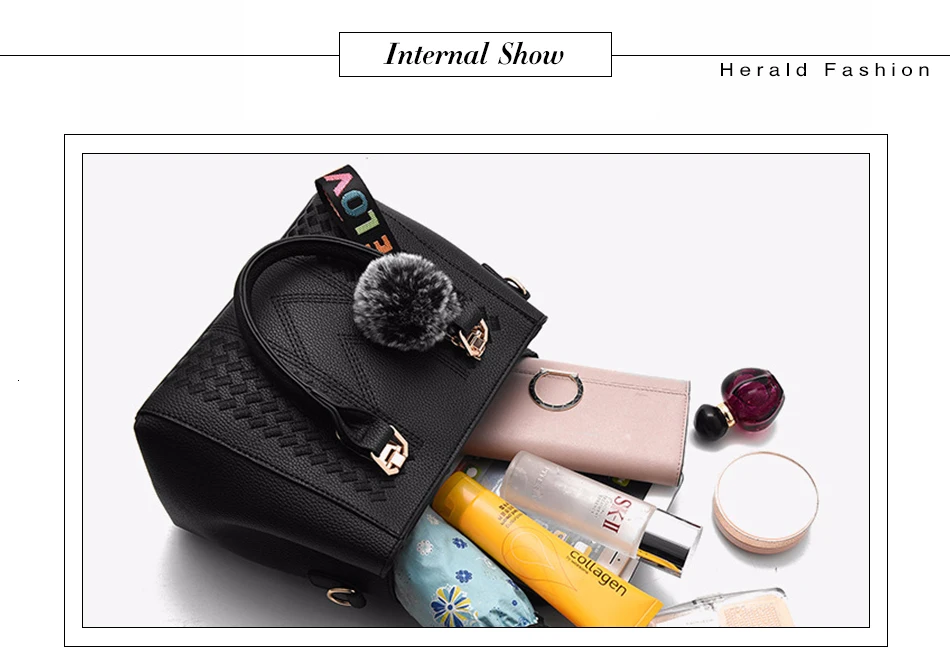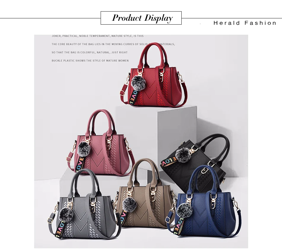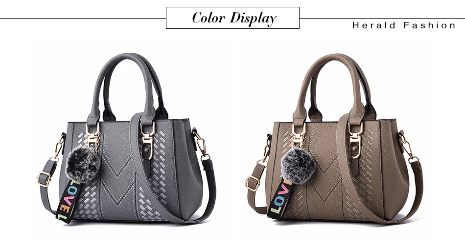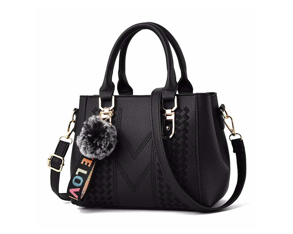 Embroidery Women Handbags with Fur Ball Designer PU Leather Shoulder Messenger Bag Office Lady Crossbody Tote Bag Female Purse