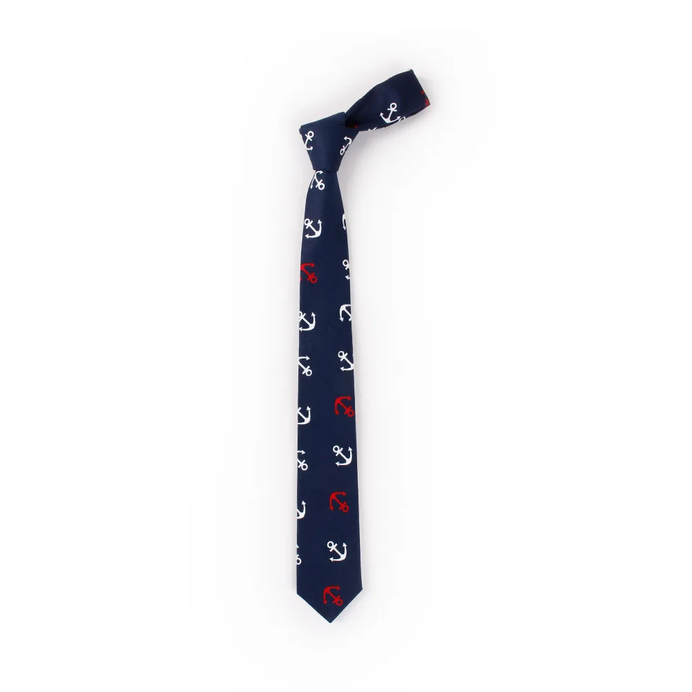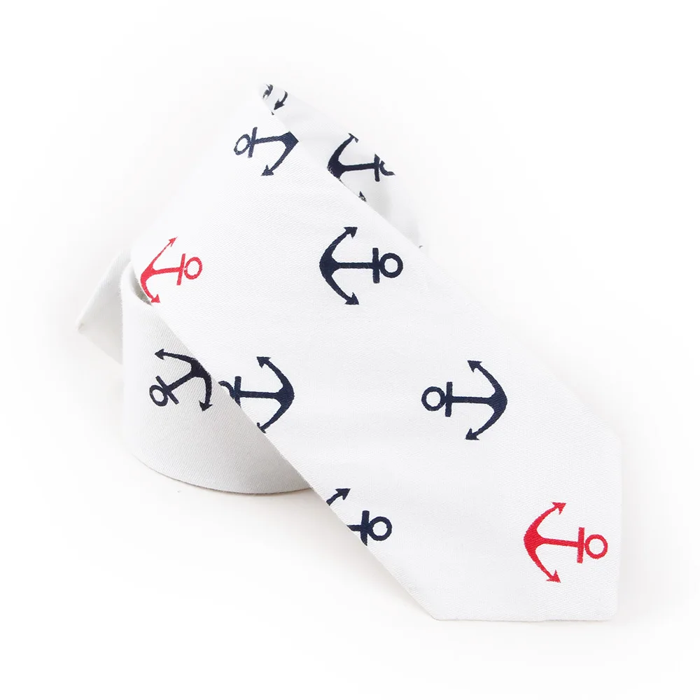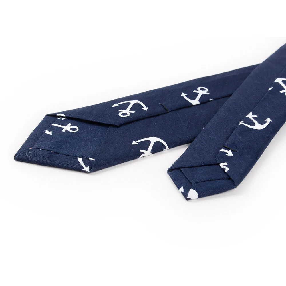 Fashion Anchor Tie Men's Cotton Slim Necktie for Suits Wedding Party Grooms Ties for Men Navy Blue Men Narrow Brand Gravatas