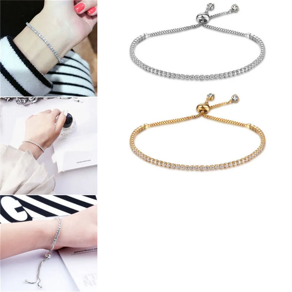 Fashion Charm CZ Tennis Bracelet for Women Crystal Zircon Jewelry Adjustable Gold Silver Color Box Chain Bracelets Gift