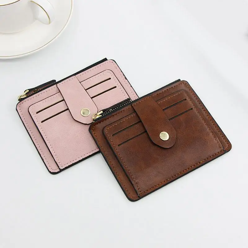 Fashion Credit ID Card Holder Slim Leather Wallet With Coin Pocket Man Money Bag Case Zipper Hasp Mini Business Card Holder Case