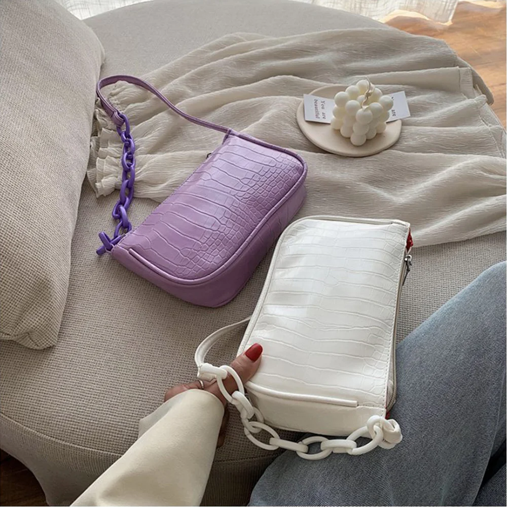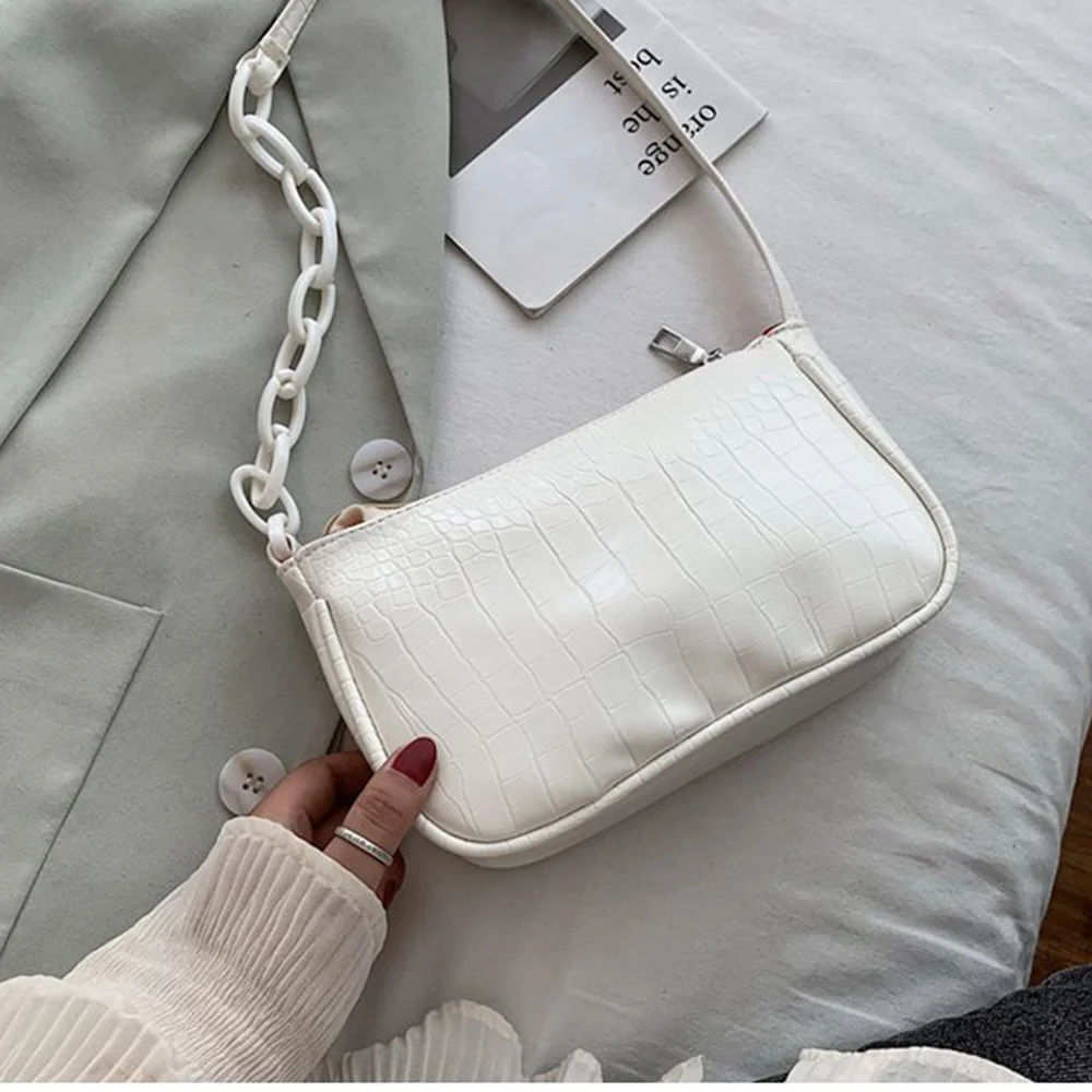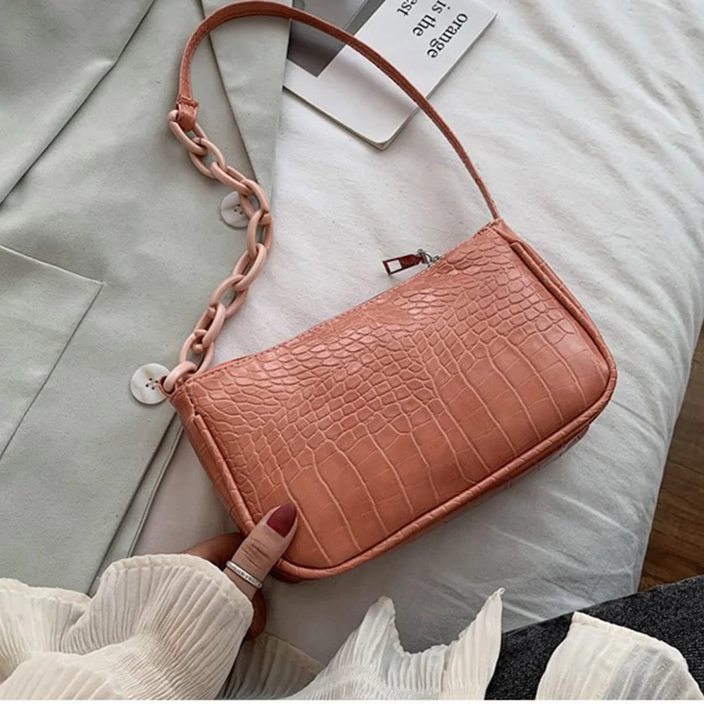 Fashion Crocodile Pattern Baguette bags MINI PU Leather Shoulder Bags For Women 2021 Chain Design Luxury Hand Bag Female Travel