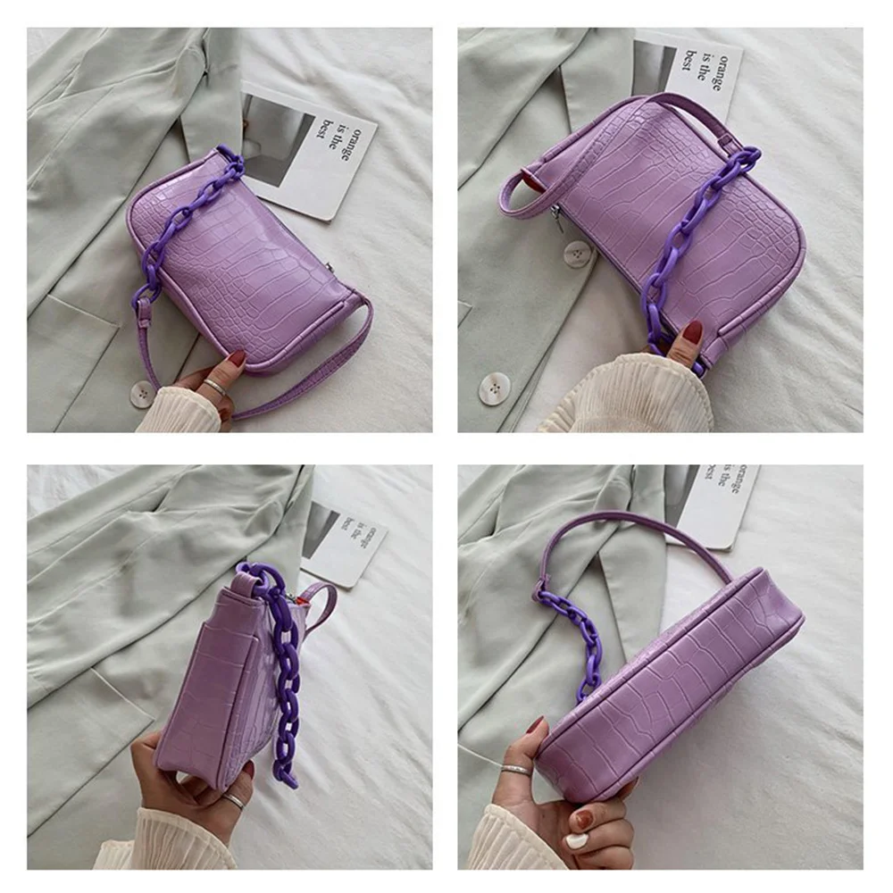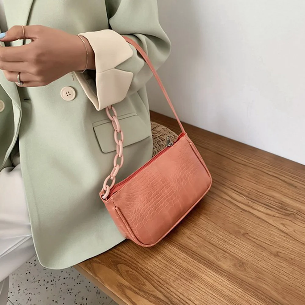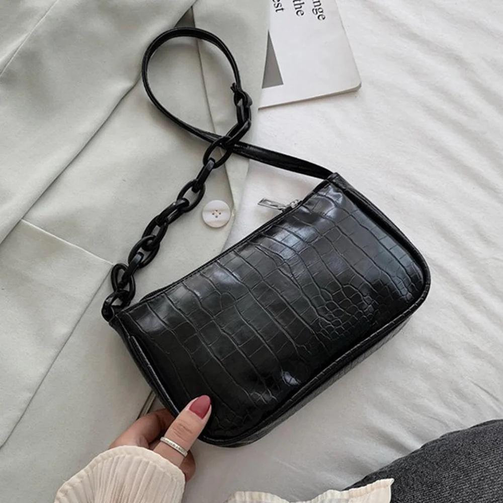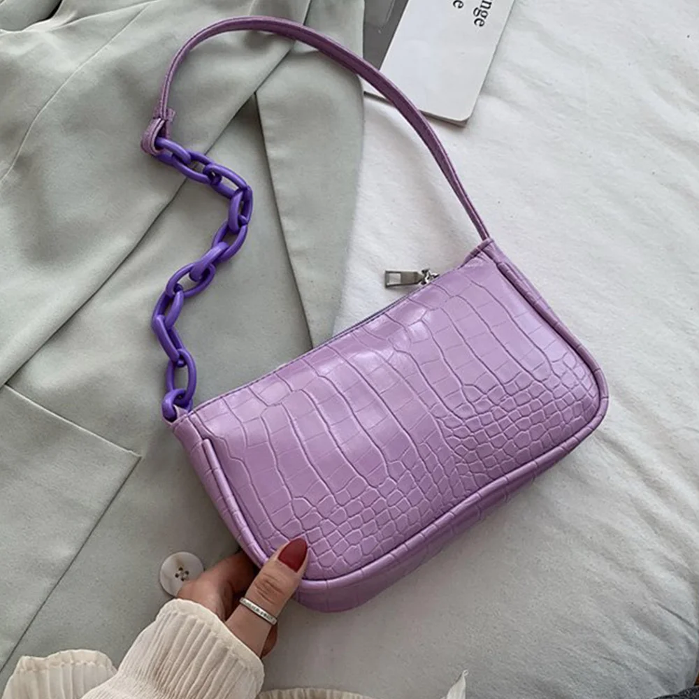 Fashion Crocodile Pattern Baguette bags MINI PU Leather Shoulder Bags For Women 2021 Chain Design Luxury Hand Bag Female Travel