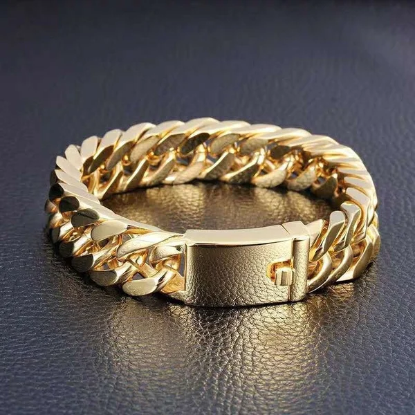 Fashion Hip Hop Curb Chain Bracelet for Men Double Buckle Domineering Bracelet Valentines Day Gift for Boyfriend Mens Jewellery