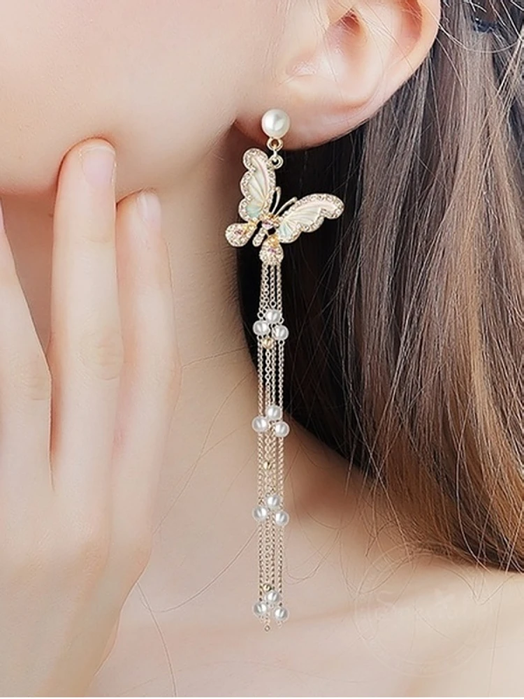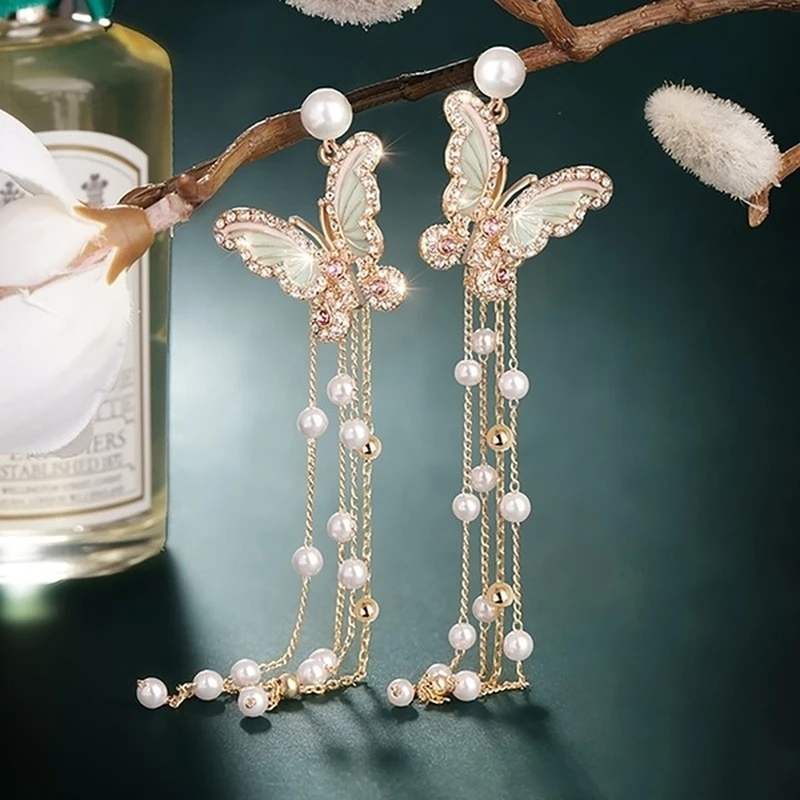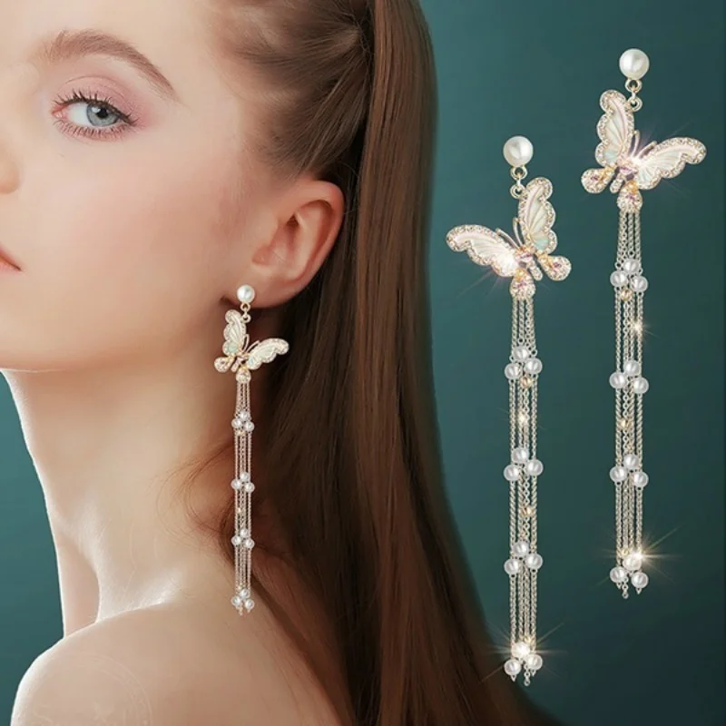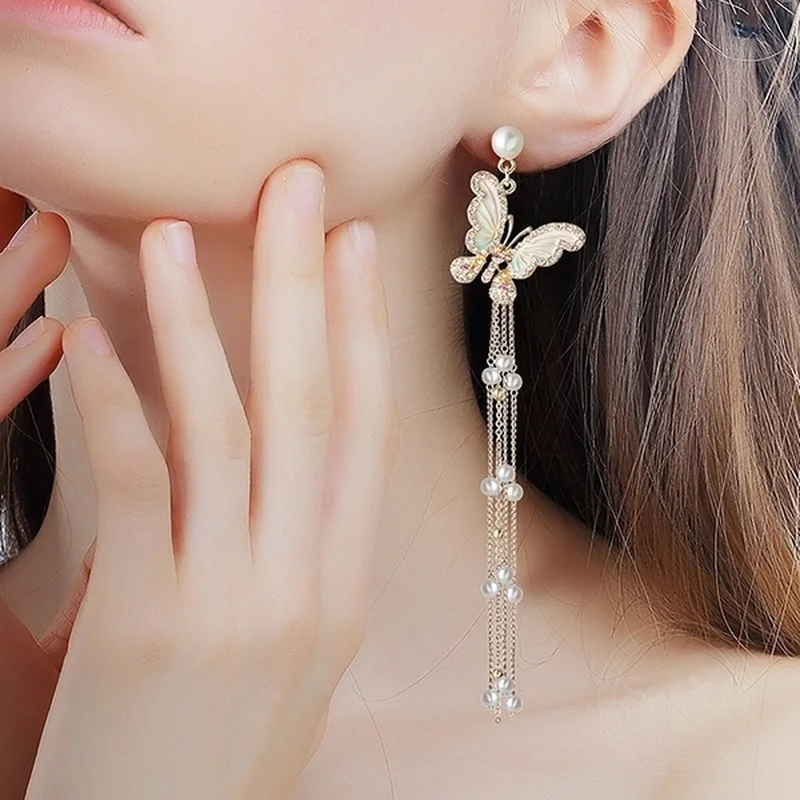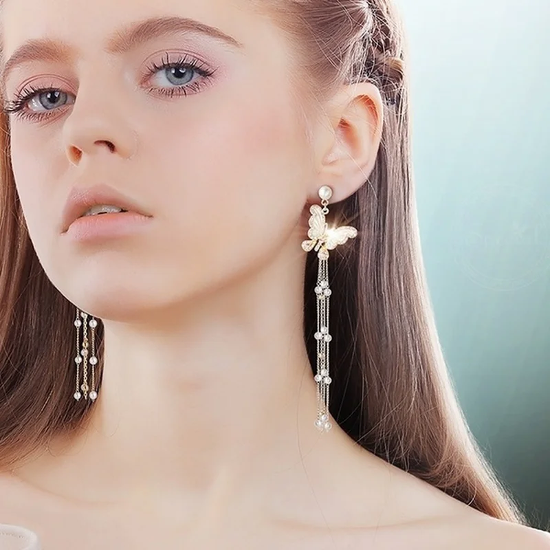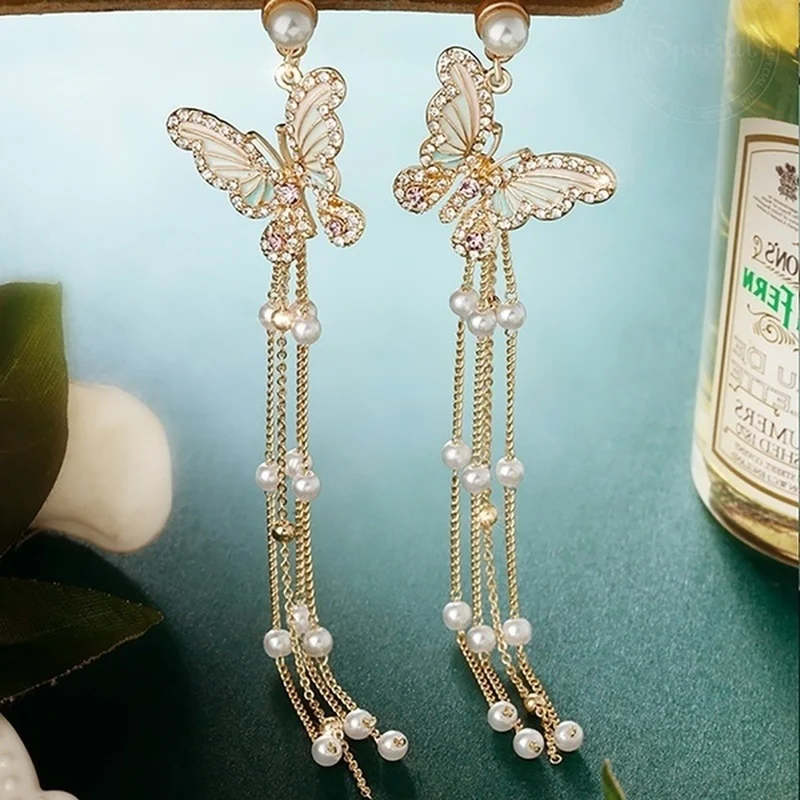 Fashion Income Pearl Bow Jewelry Woman Earrings 2021 Trend Long Tassel Crystal Pendant Halloween Party Christmas Gift