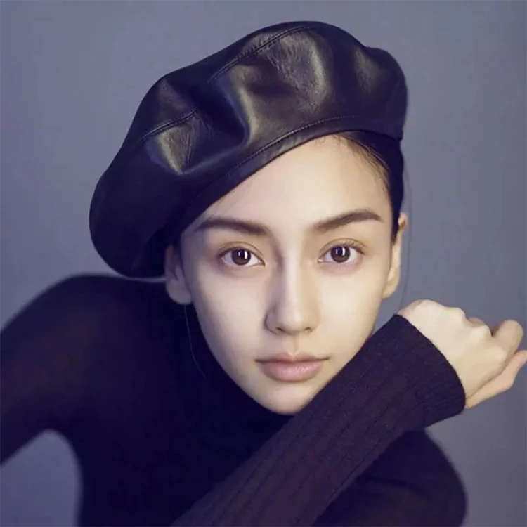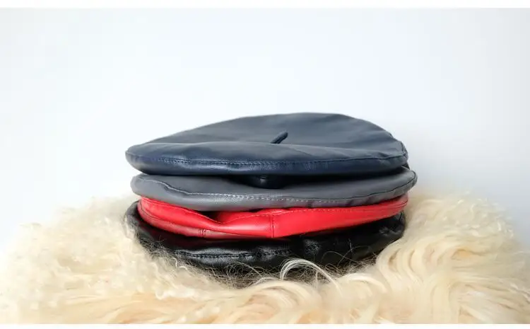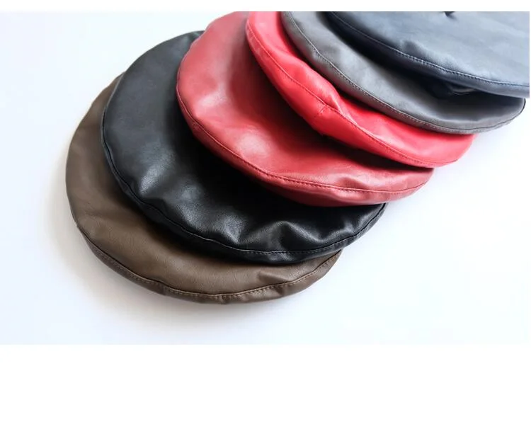 Fashion Korean Style Berets Women Black Red Pu Leather Beret Hat For Women Flat Cap Gorras Female Retro Beanie