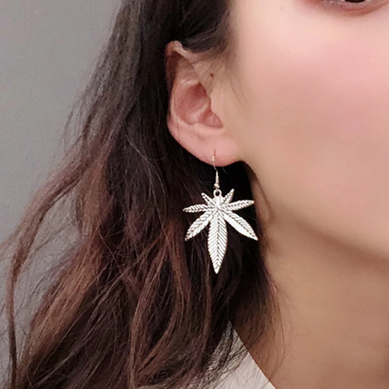 Fashion maple leaf earrings, hemp leaf pendant earrings, men and women punk charm leaf earrings gift jewelry accessories