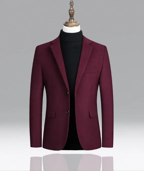 Fashion Mens Coats and Jackets Male One Piece Blazer Top Wool Blends Suit Men Jacket Spring Smart Casual Coat Solid Two Buttons