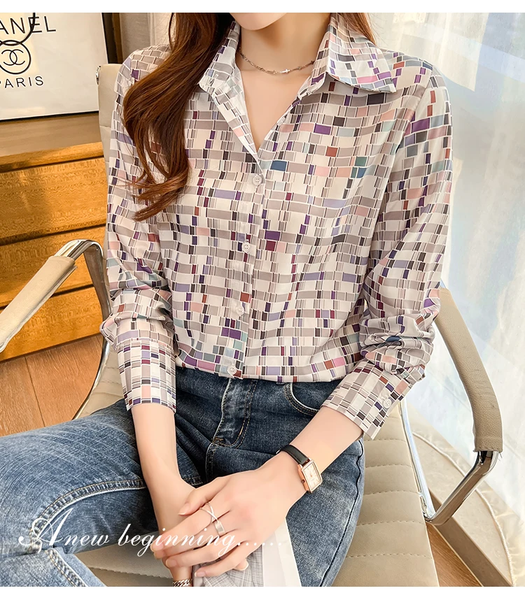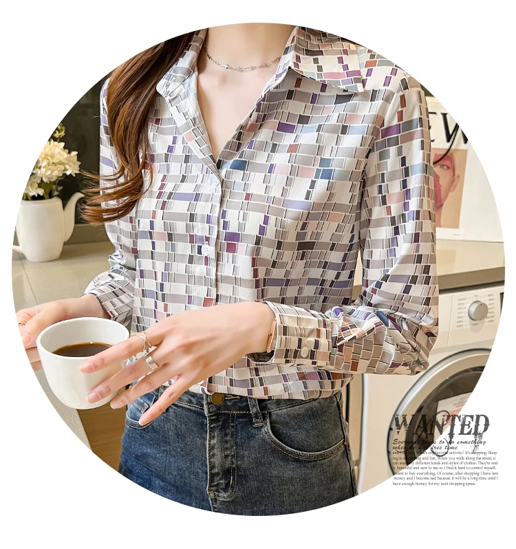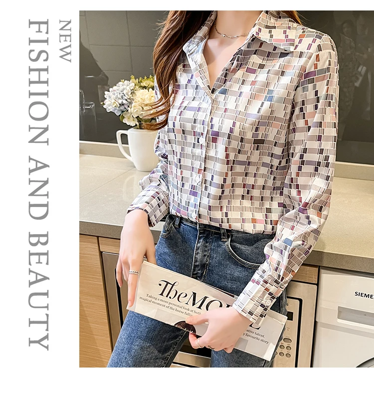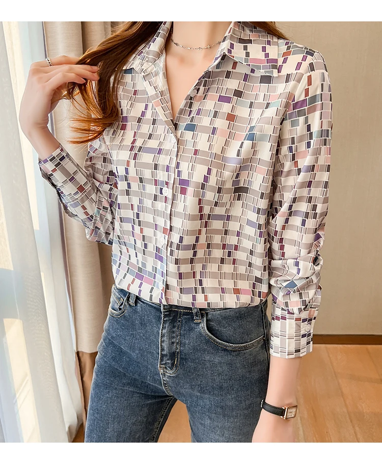 Fashion plaid printing ladies shirts Women's Blouses Long Sleeve Shirts Tops Blusas Mujer