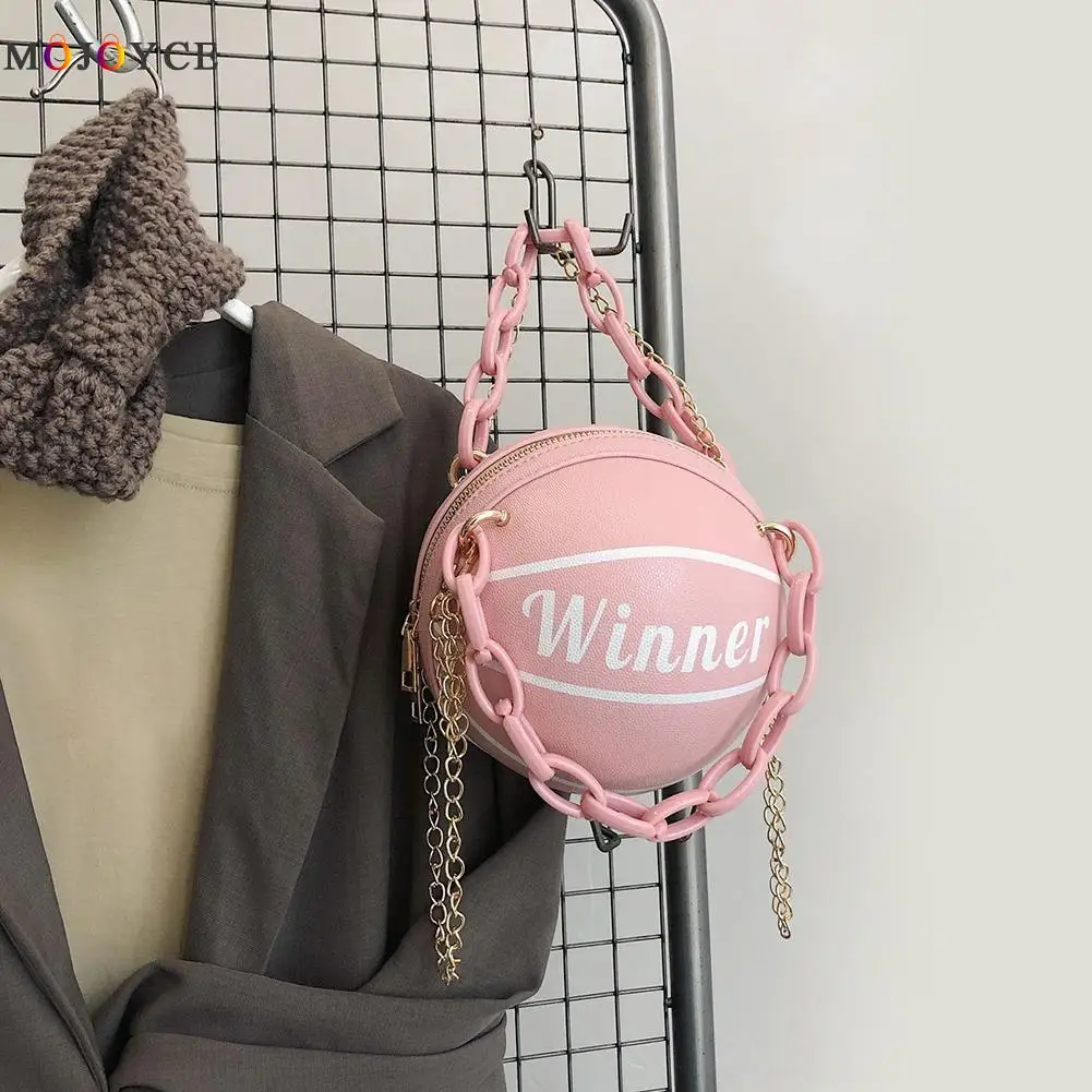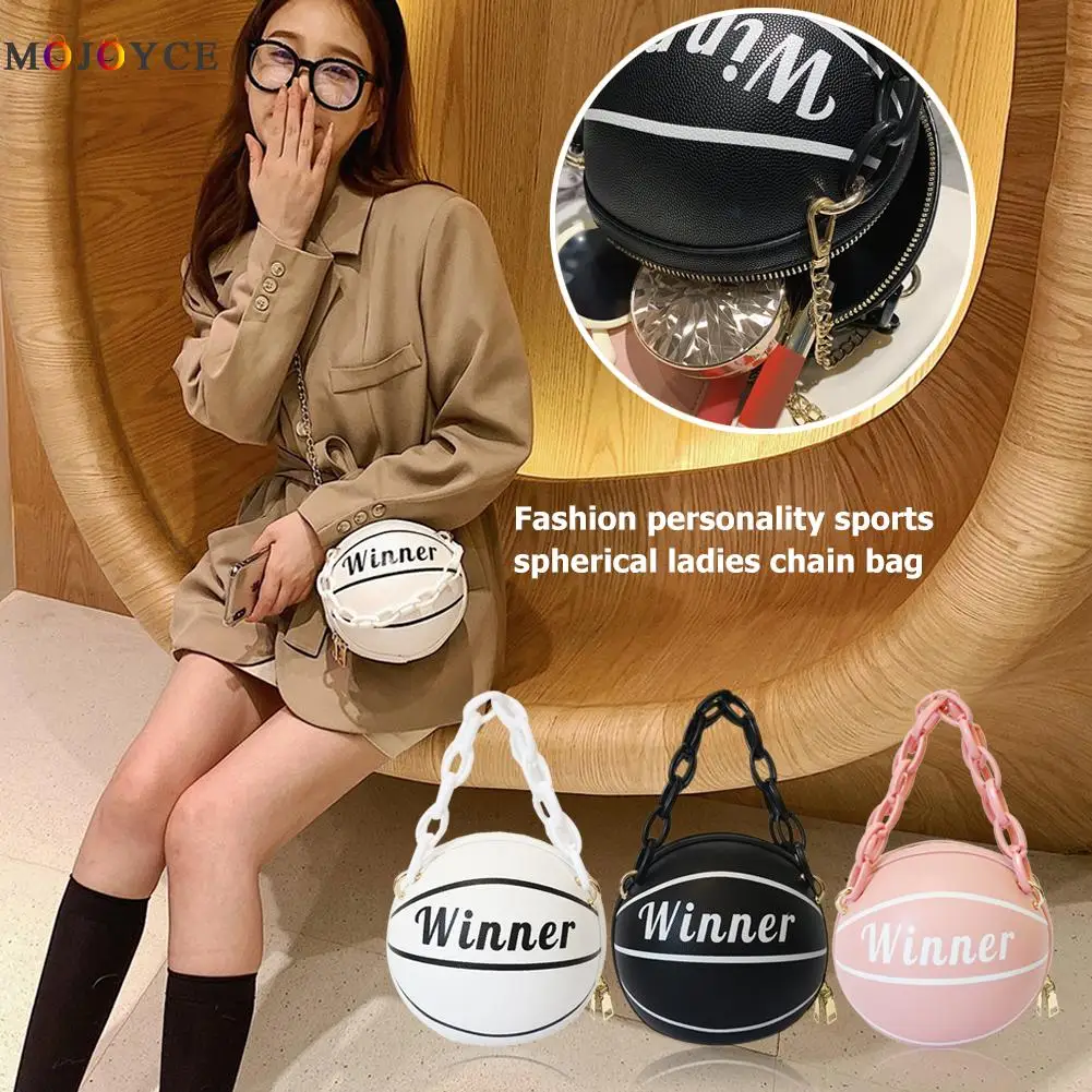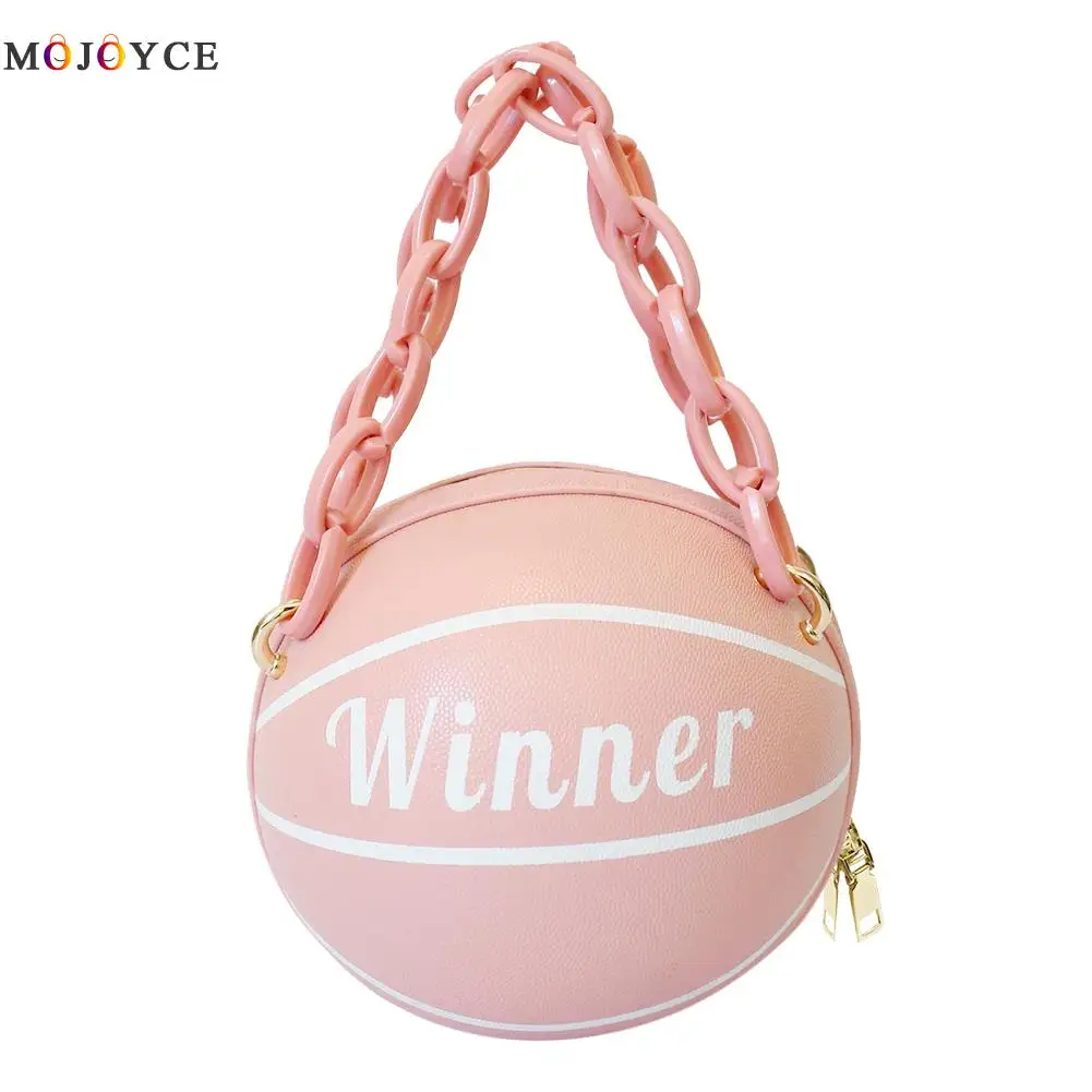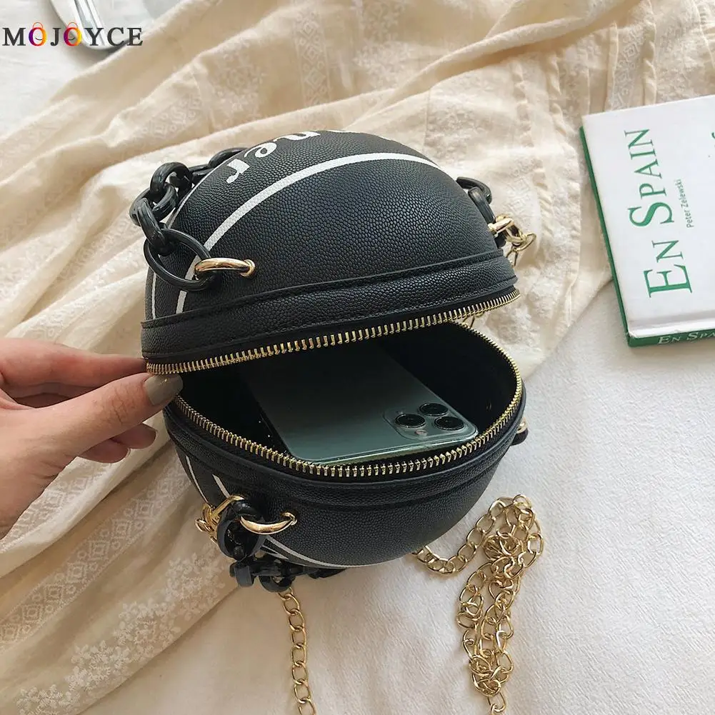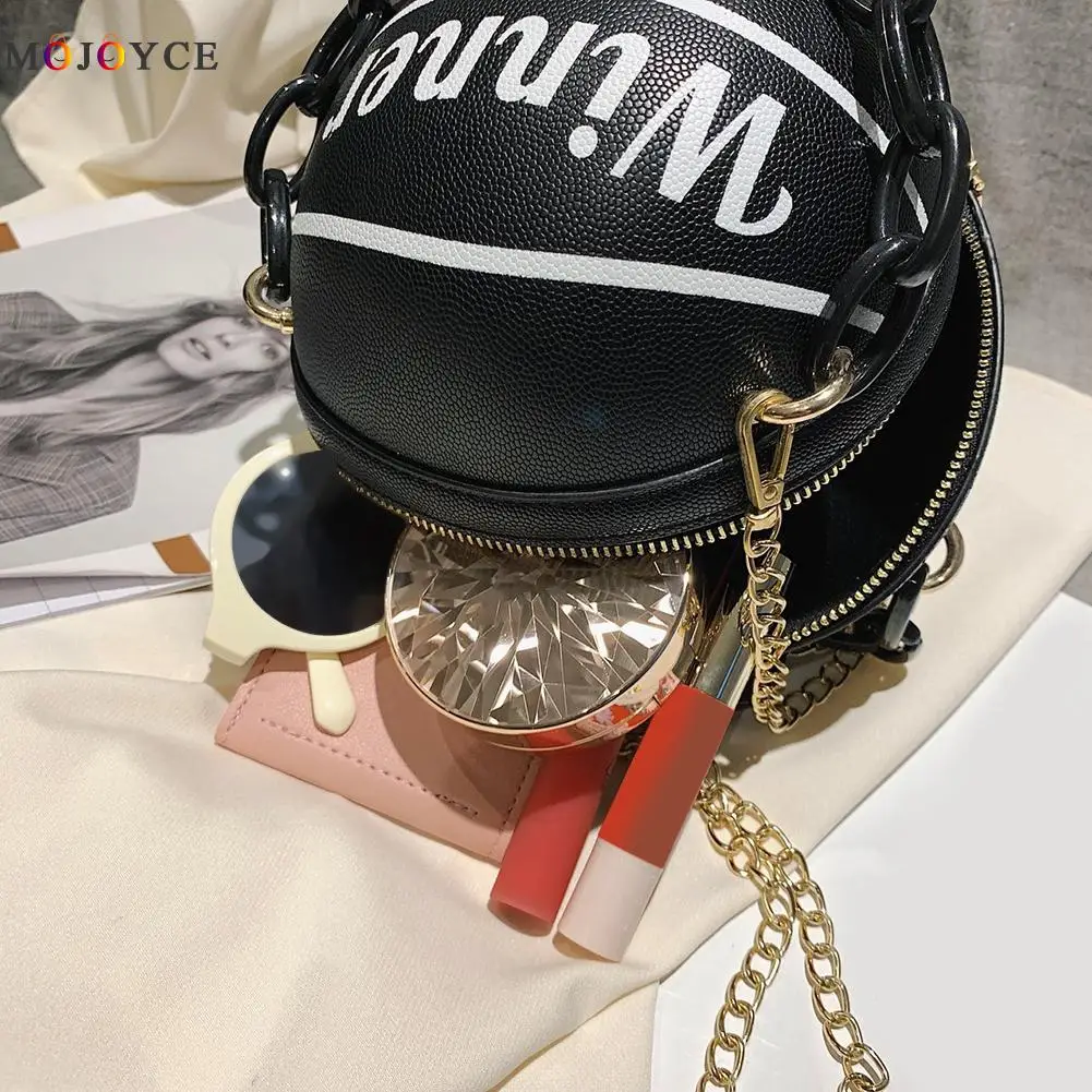 Fashion Round Ball Shaped Shoulder Bags for Women Acrylic Chain Letters Spherical Zipper Totes Sports Casual Messenger Crossbody Handbags