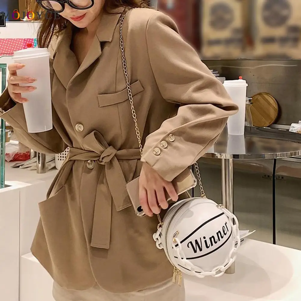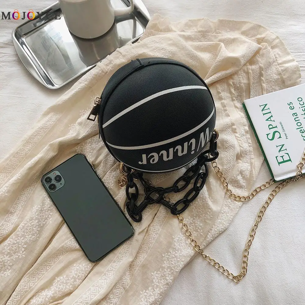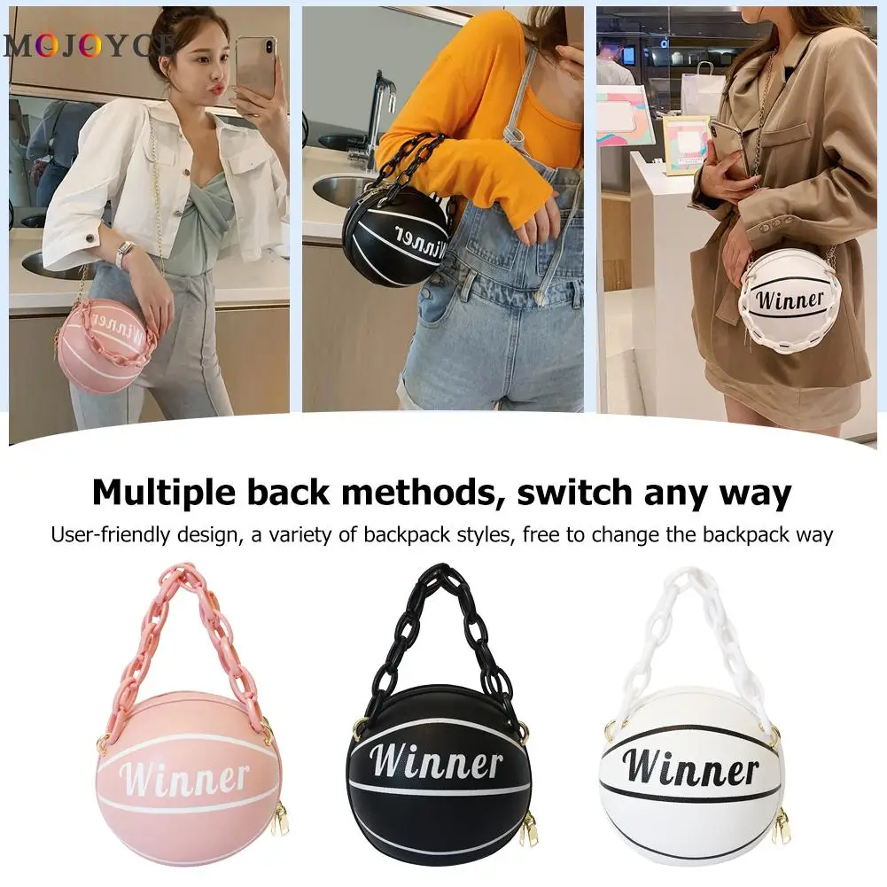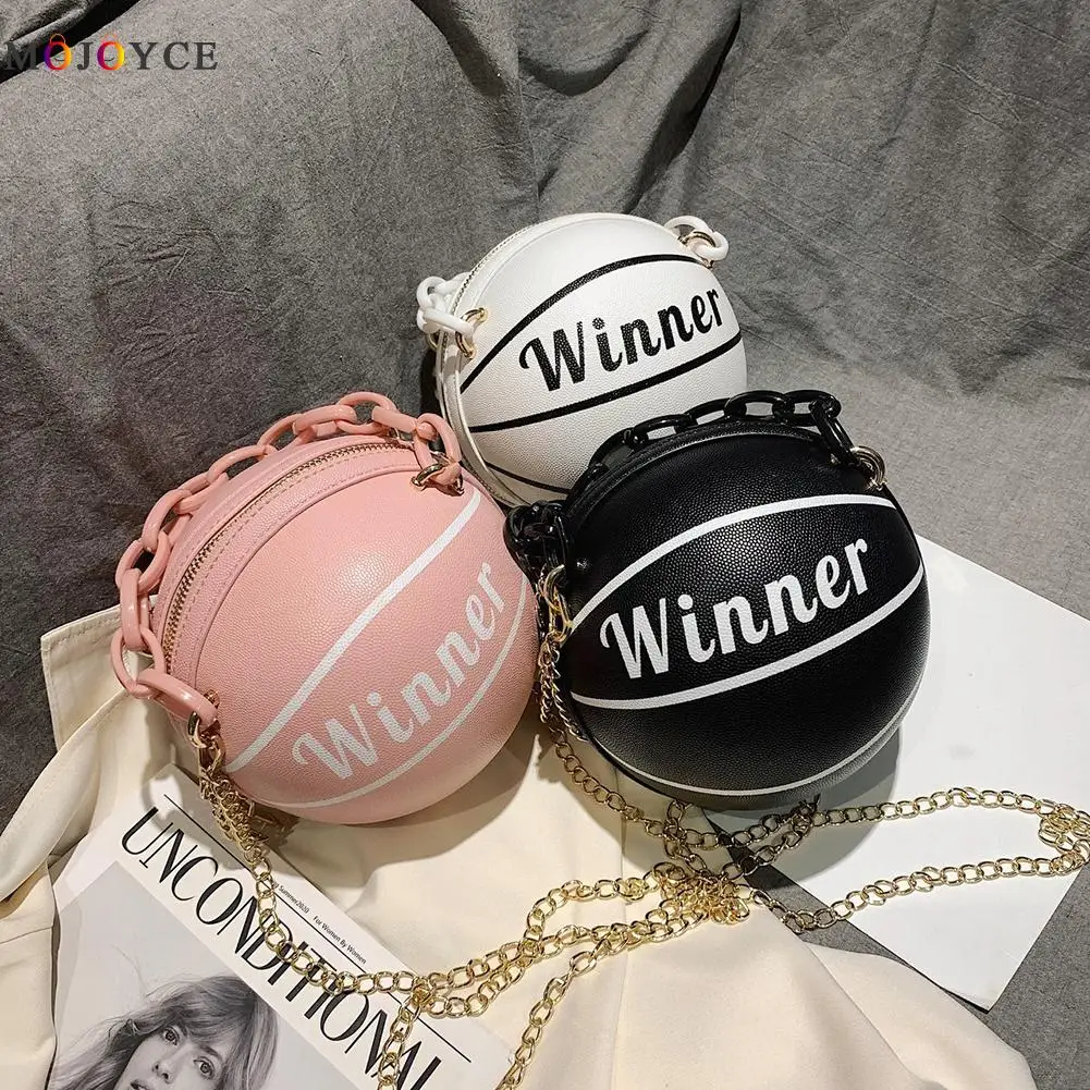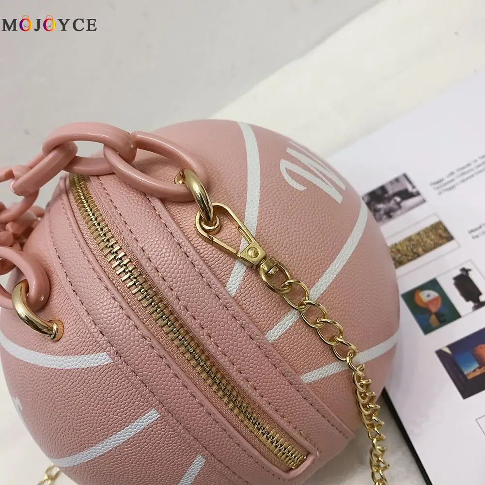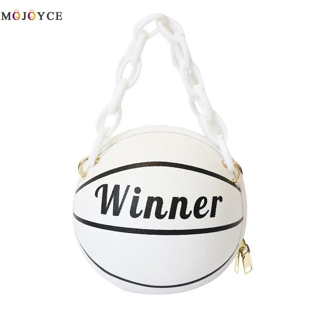 Fashion Round Ball Shaped Shoulder Bags for Women Acrylic Chain Letters Spherical Zipper Totes Sports Casual Messenger Crossbody Handbags
