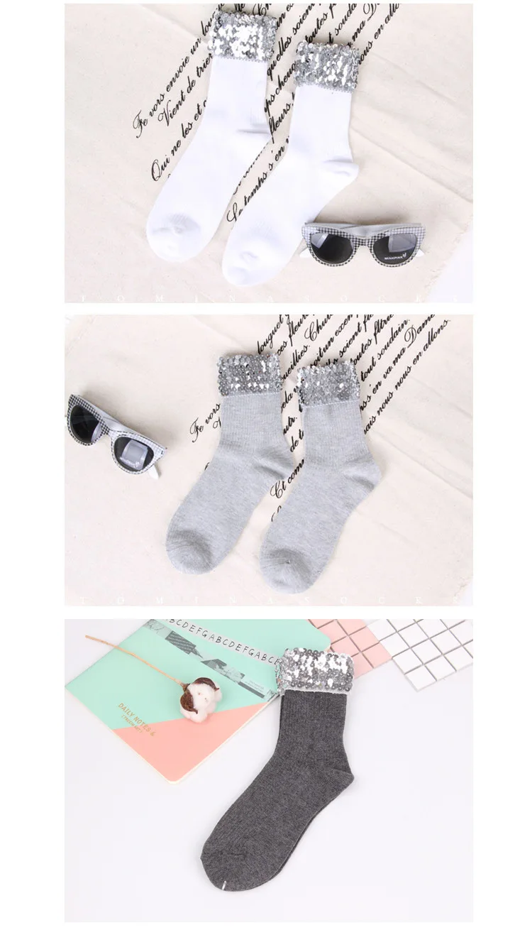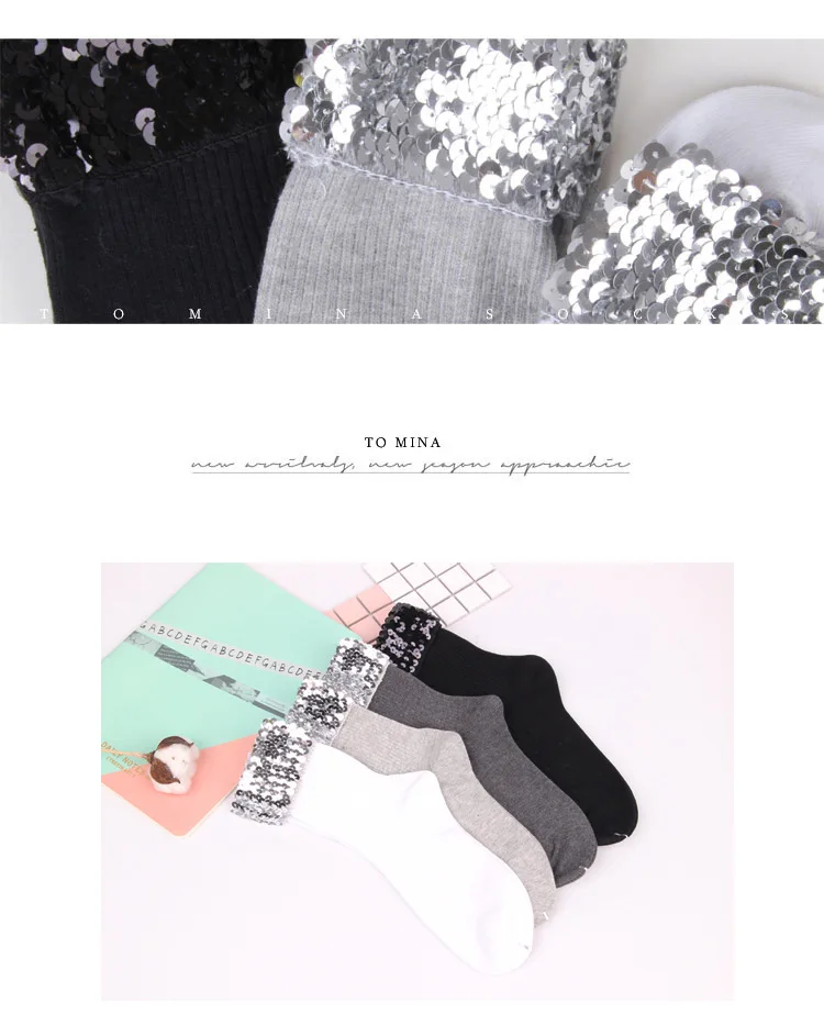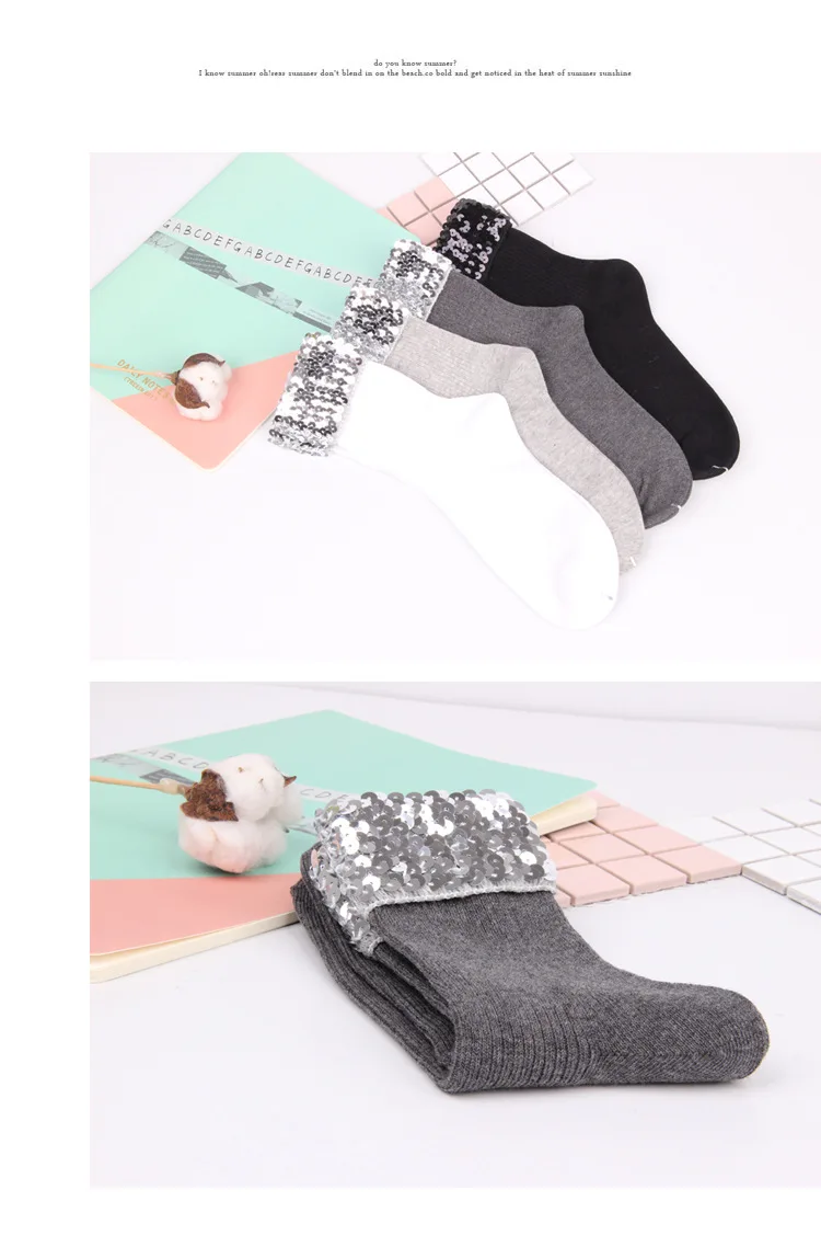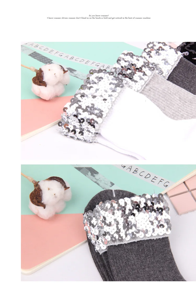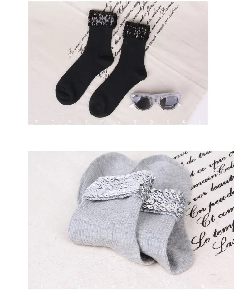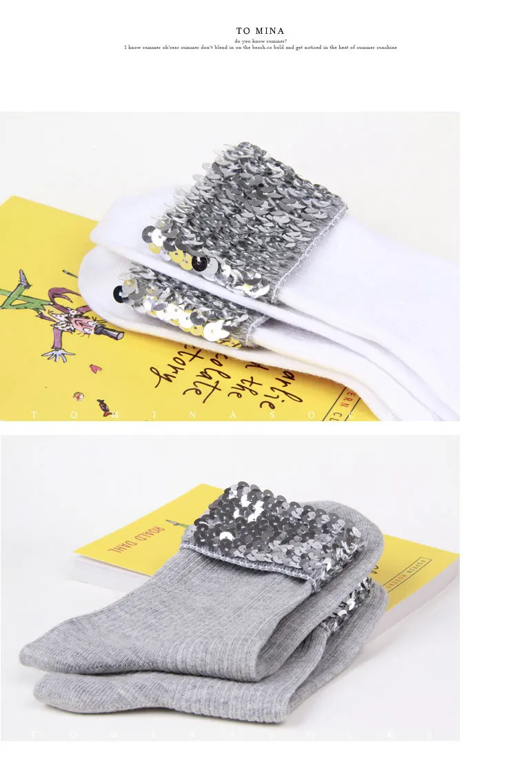 Fashion Short Glitter Socks Women Vintage Cotton Shiny Socks Harajuku Soft Cute sock Casual Chic Bead Art socks Female Hosiery