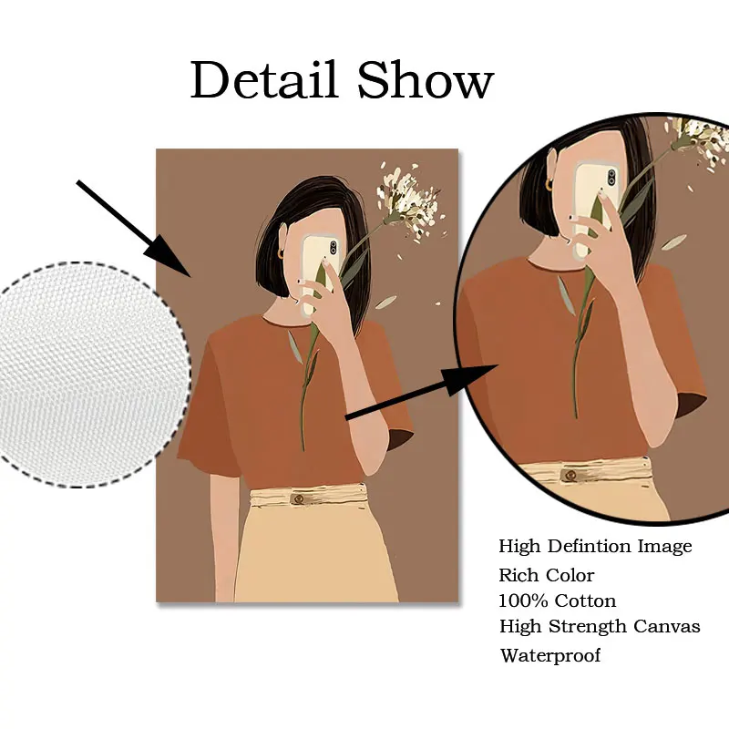 Fashion Vintage Girl Plant Wall Art Abstract Canvas Painting Nordic Posters and Prints Wall Pictures for Living Room Home Decor