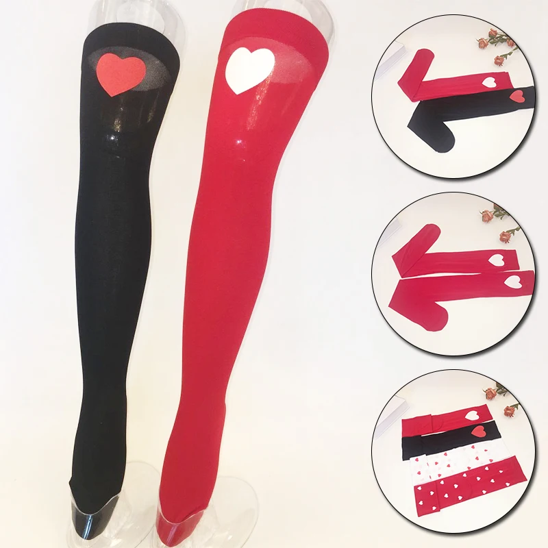 Fashion Women Girl Nylon Stretchy Over The Knee High Socks Stockings Tights With Heart Thigh High Quality