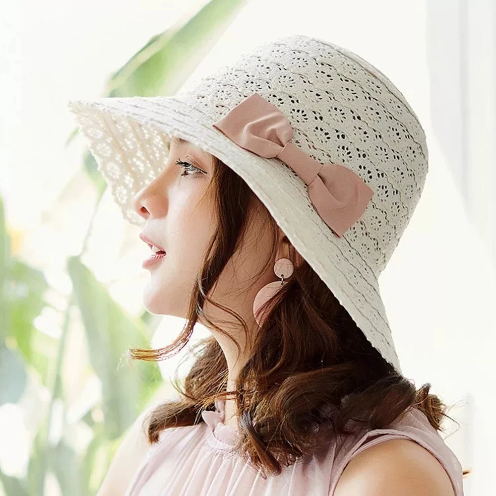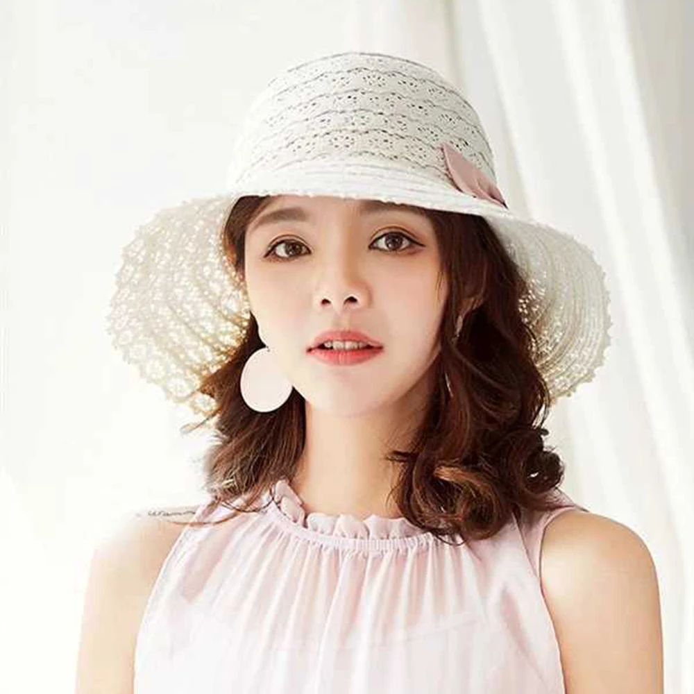 Fashion women Straw Hat For Ladies Summer Spring Trip Beach Sun Hats bow Women Sun Visor Hat sombreros mujer verano Foldable