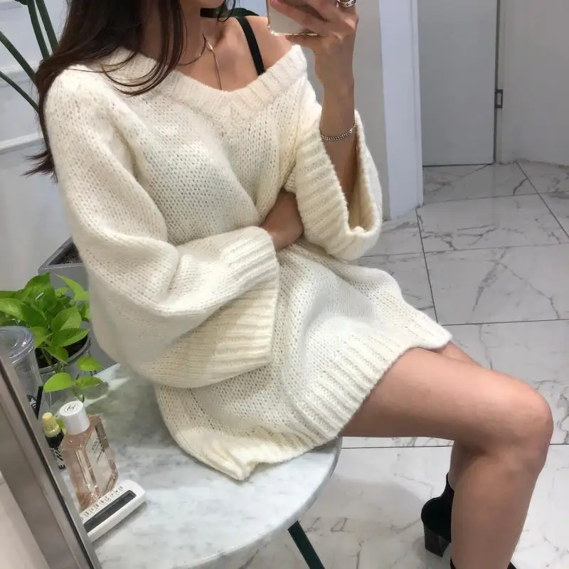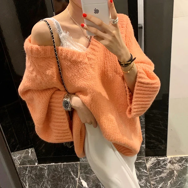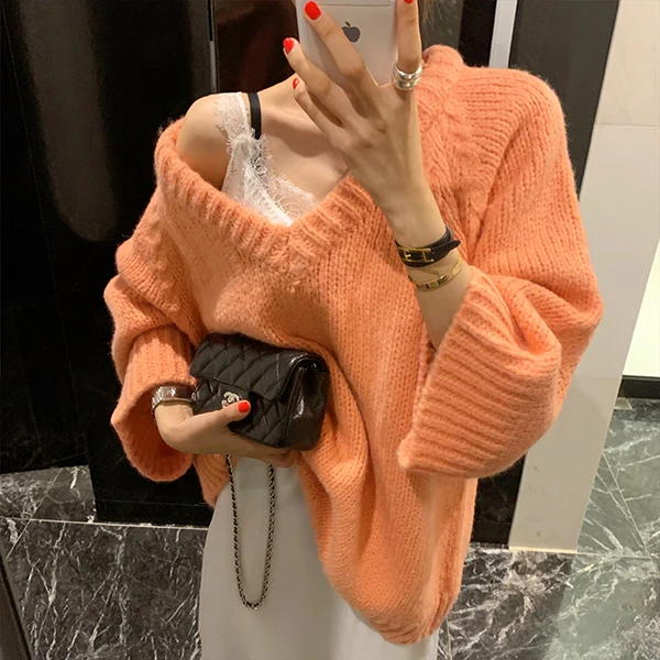 Fashion women sweater 2020 autumn and winter loose large size bat sleeves lazy V-neck sweater sweater women