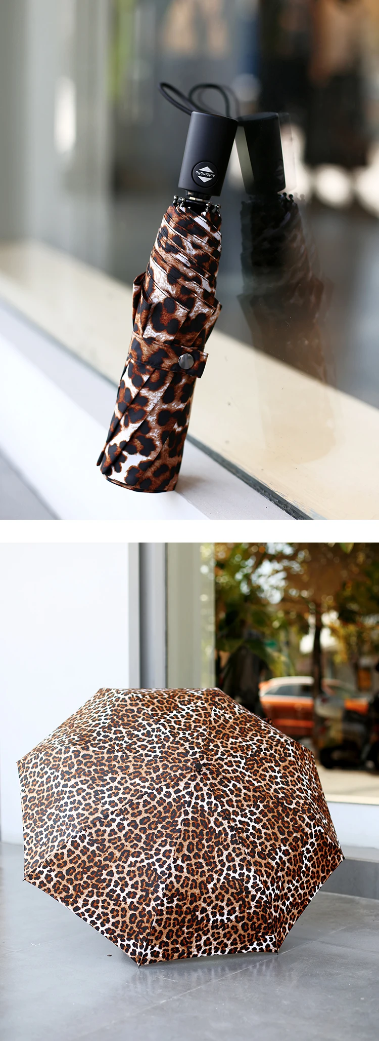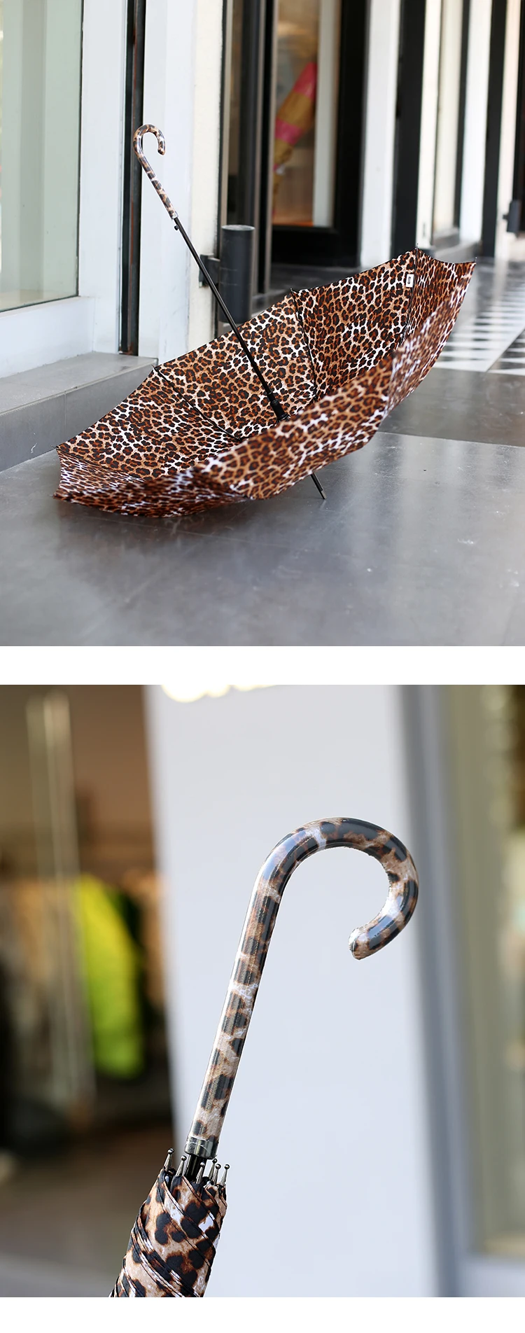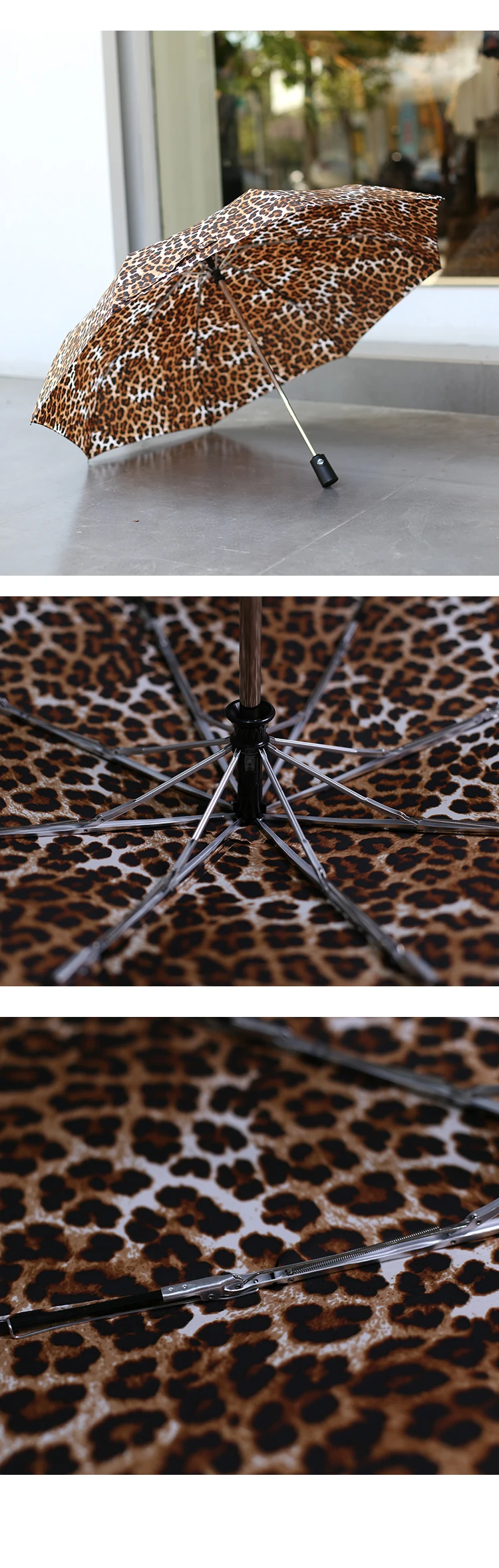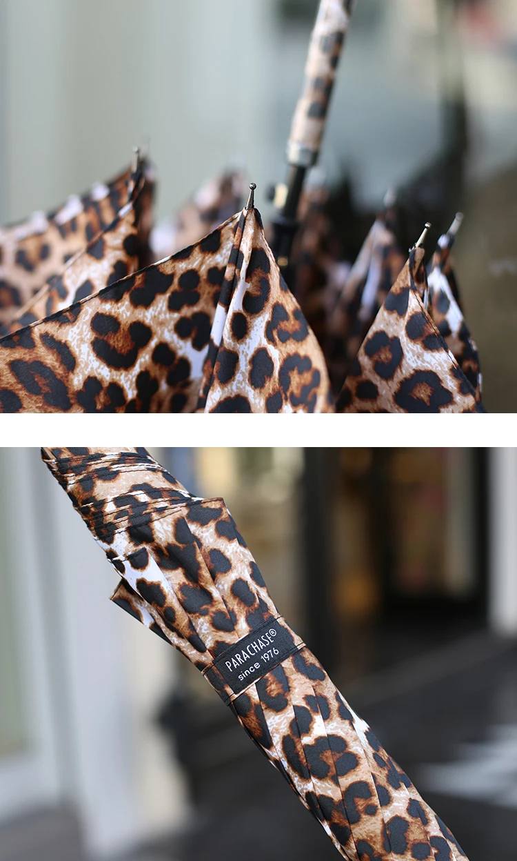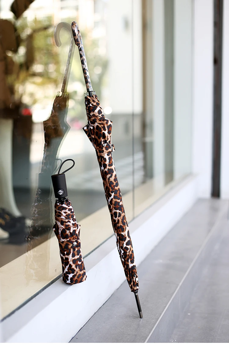 Fashion Women Umbrella Leopard Pattern Parachase Long Handle Umbrella Rain Women Travel Automatic Folding Umbrella Girl 8 Ribs
