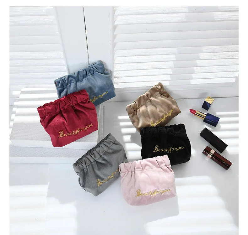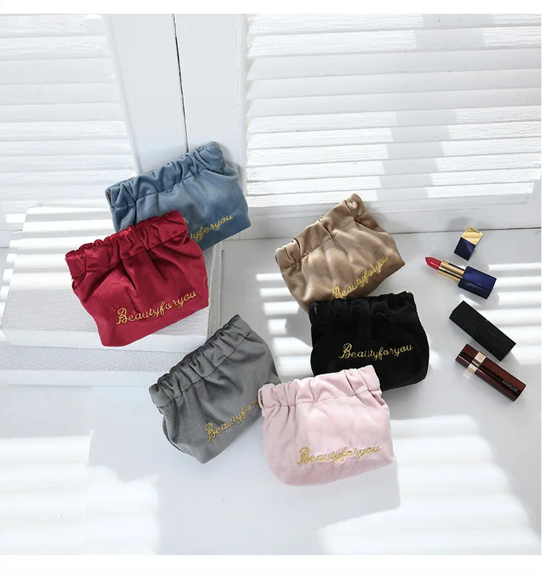 Female Purse Velvet Letter Print Mini Coin Mini Lipstick Bag Female Design Solid Color Storage Bag