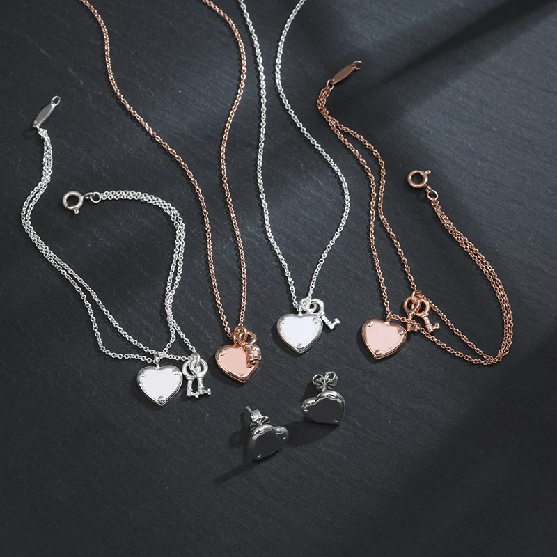 Fine Jewelry Silver Heart Necklace Heart Stud Earrings 925 Sterling Silver Fashion Women's Holiday Gifts Free Shipping