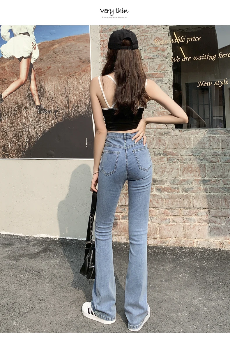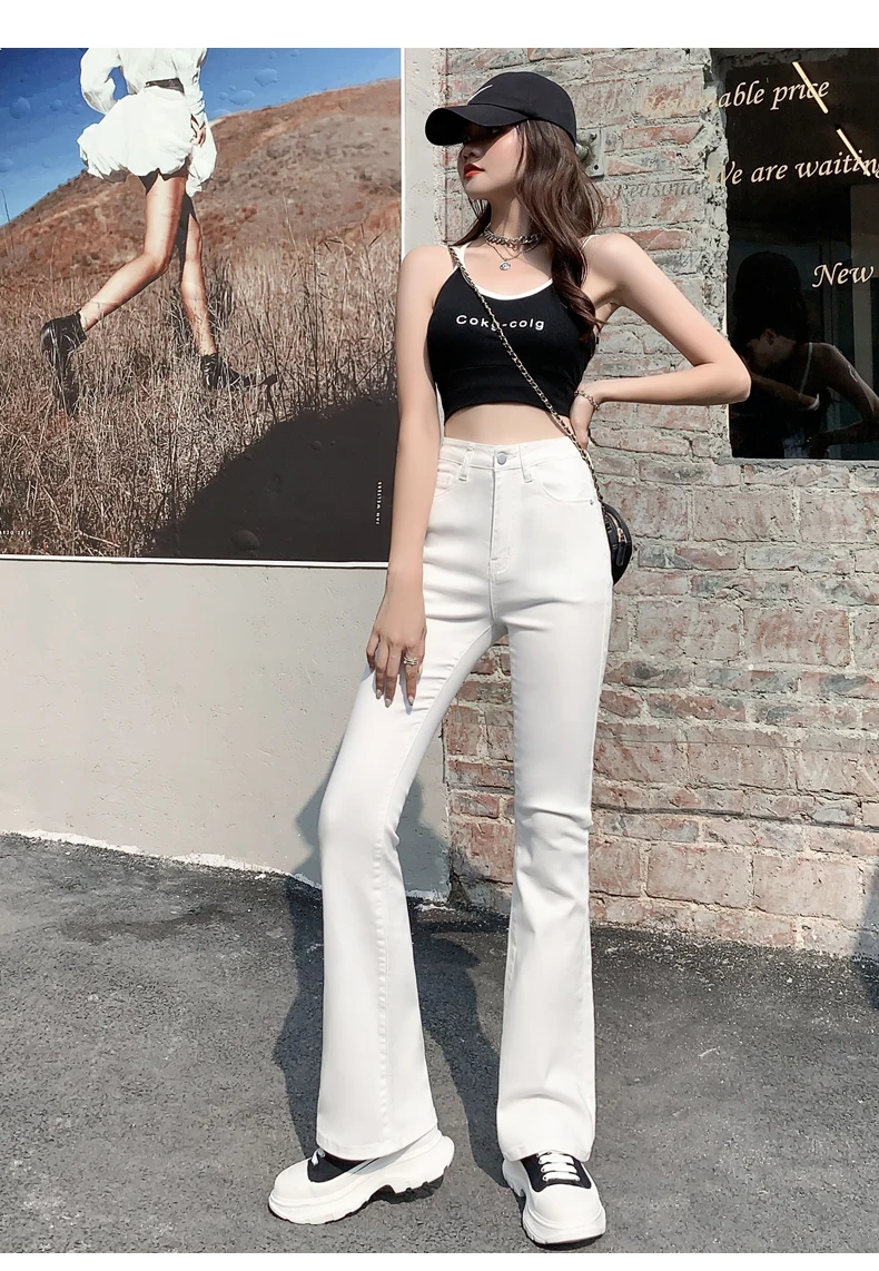 Flared Jeans Woman High Waist Denim Trousers For Female Blue White Black Elastic Skinny Fashion Classic Leisure Wide Leg Pants