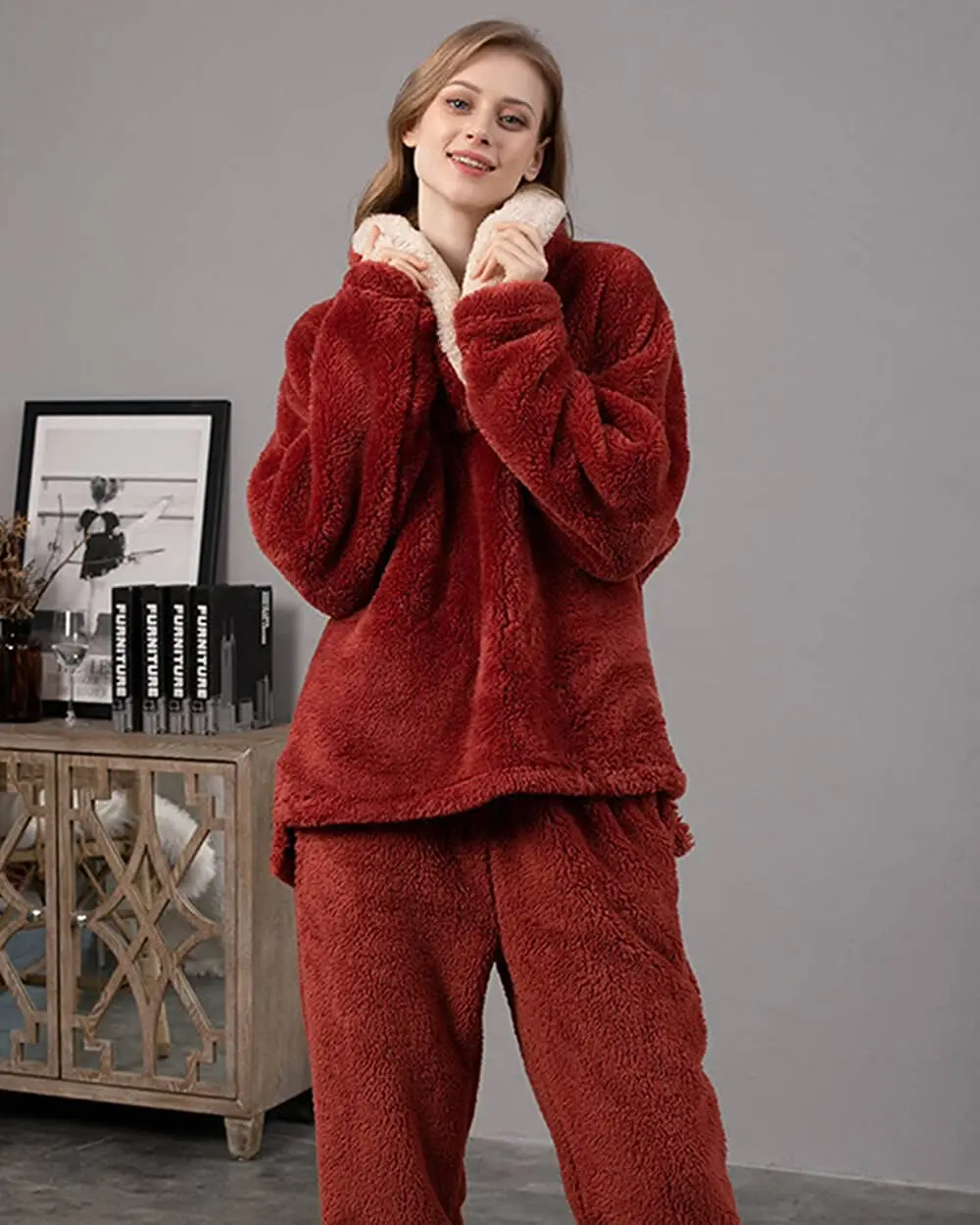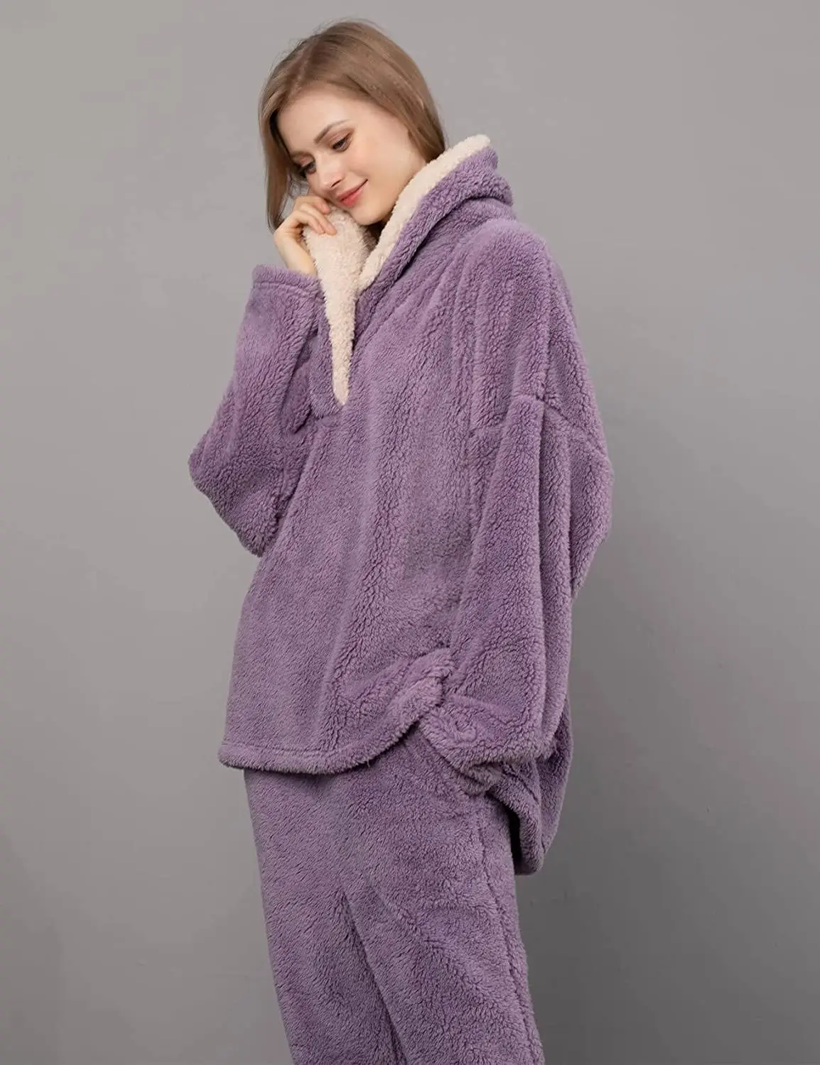 Fleece Pajamas for Women Soft Comfy Fluffy Pajamas Set Pullover Pants Loose Plush Warm Clothes for Winter Sleepwear