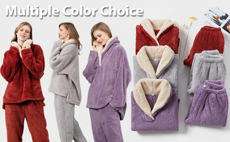【Great Gift Idea】 Our womens winter pajama sets are amazing holiday gifts for women. Sherpa pajama sets have a warm and stylish look and will always be a perfect Christmas gift for your lover, wife, girlfriend, family, friends or yourself. Many stylish colors for you to choose from.
