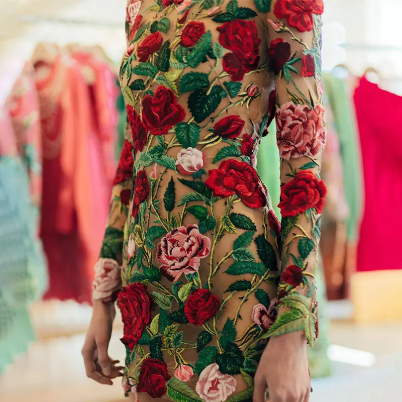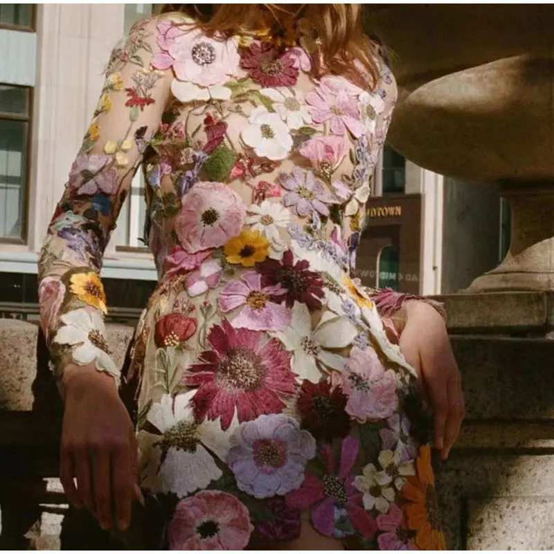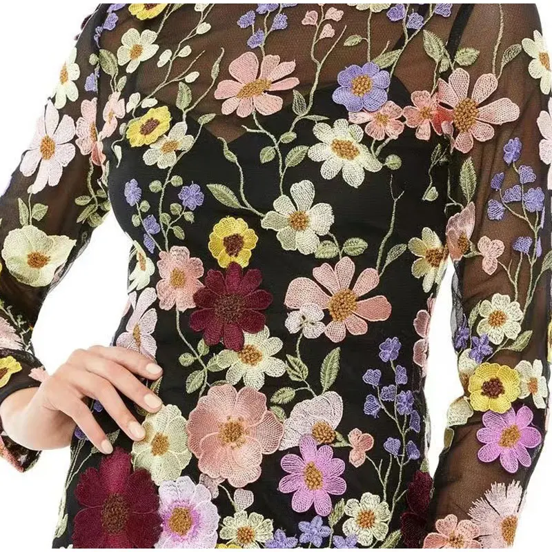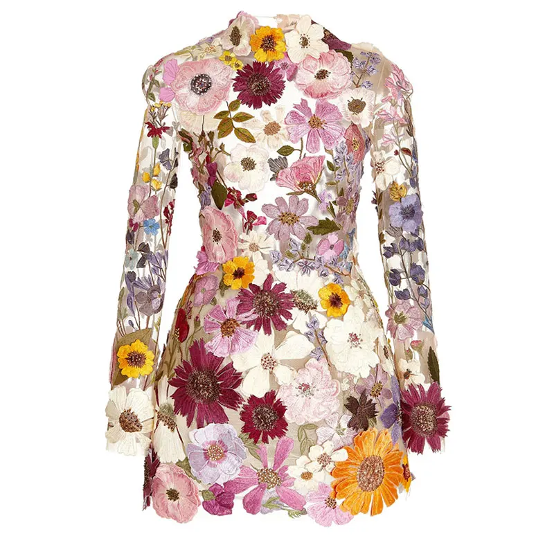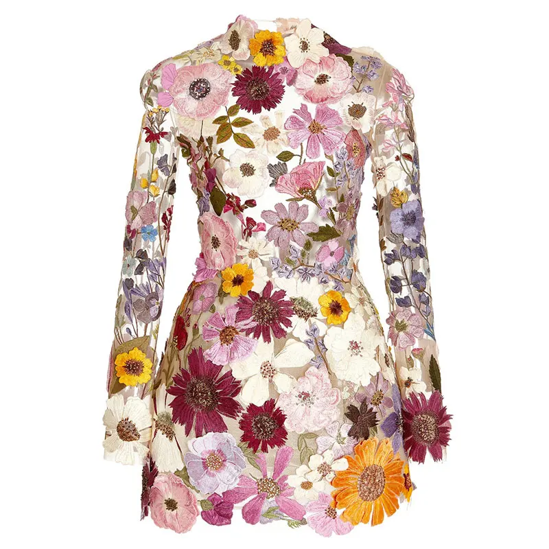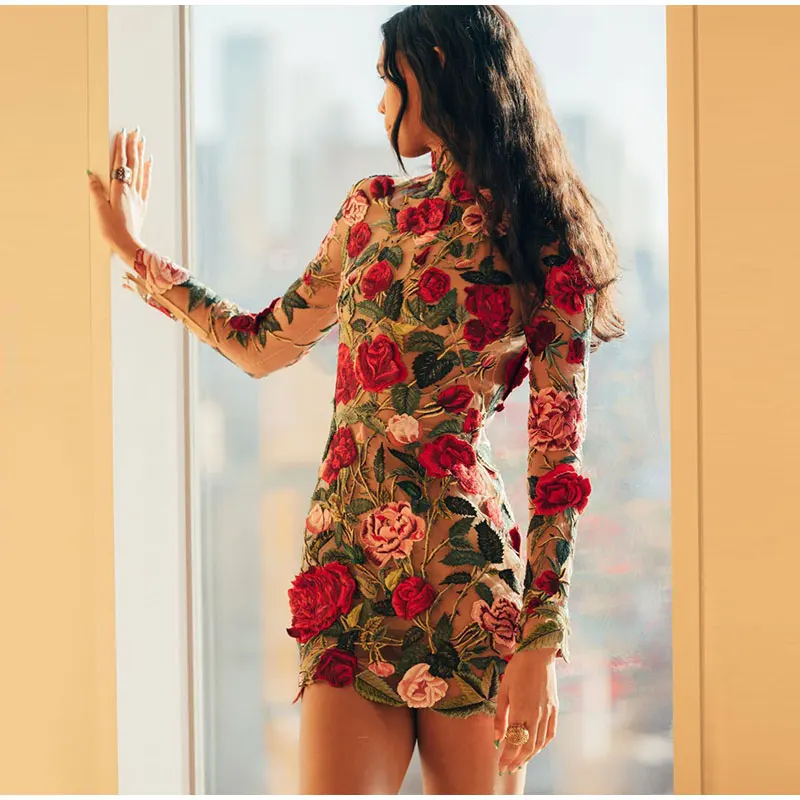 Floral Embroideried Luxury Bodycon Mini Dress for Women