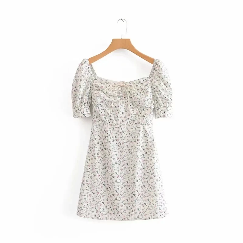Floral vintage dress women beach dress elegant square collar white party dress Sexy mini dress puff sleeve vestidos Fall
