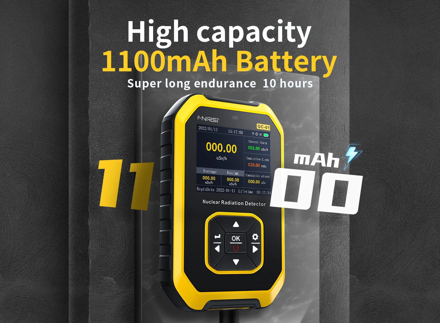 The FNIRSI GC-01 nuclear radiation detector uses a higher-precision Geiger-Miller counter.