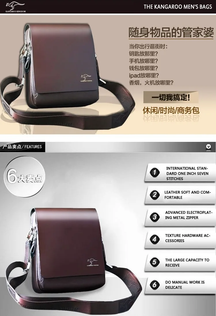 Free shipping! Authentic brand composite leather bag casual male shoulder briefcase kangaroo messenger bag men's travel bags