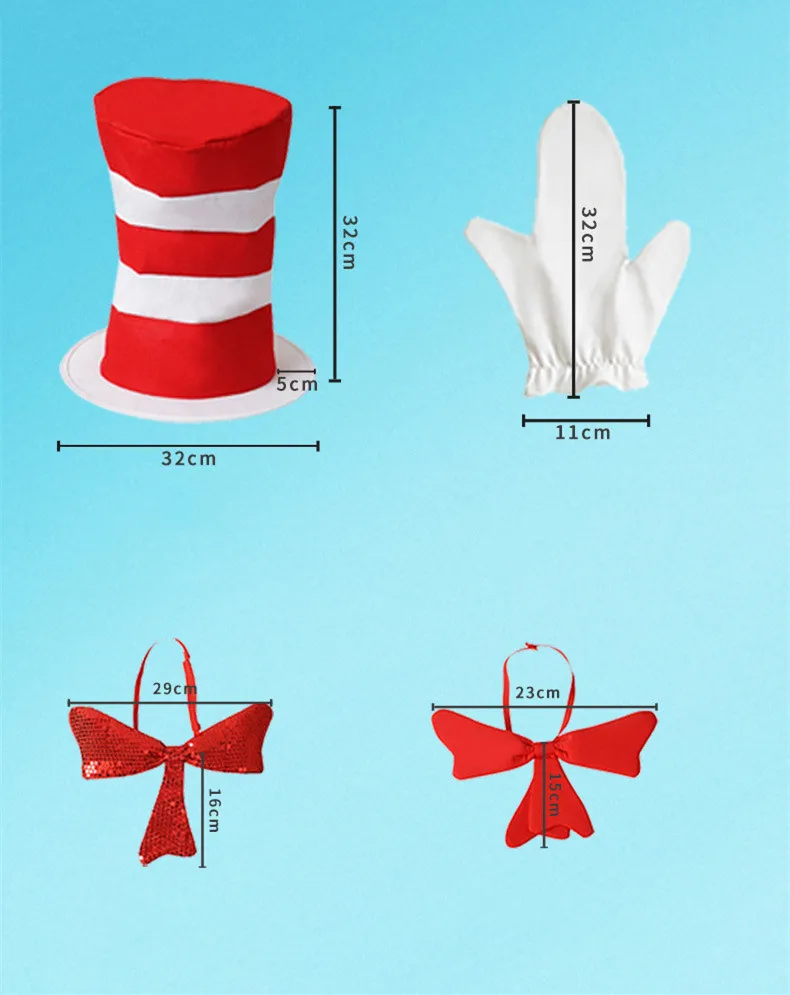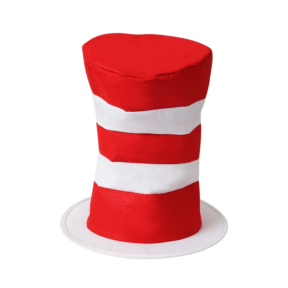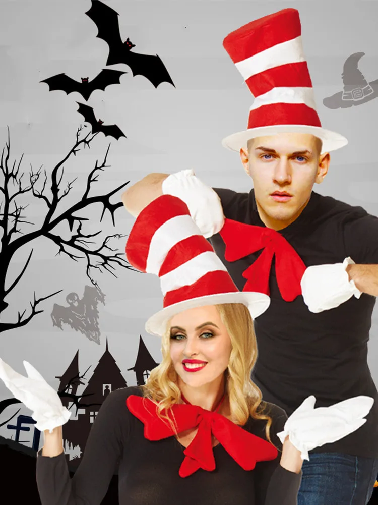 Funny Party Hat Women Men Red Bow Tie Hat White Gloves Long Striped Felt Plush Cap Holiday Theme Hat Christmas Party Spoof Head
