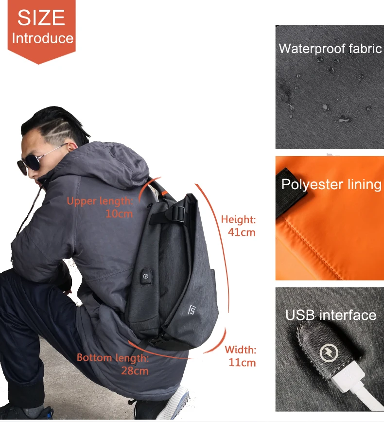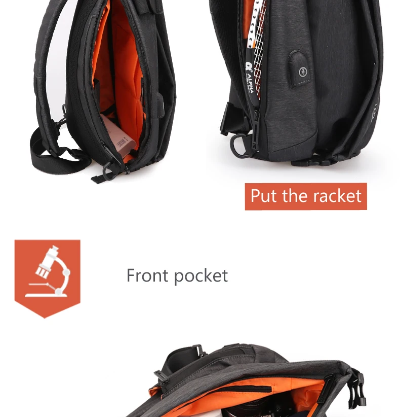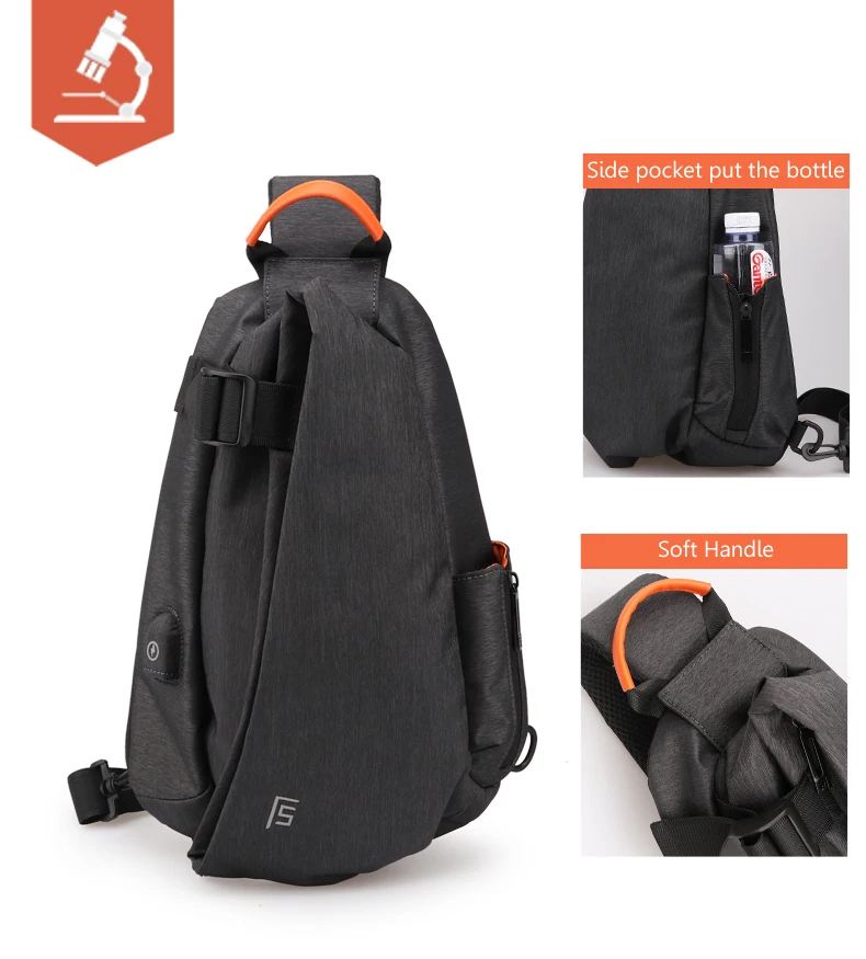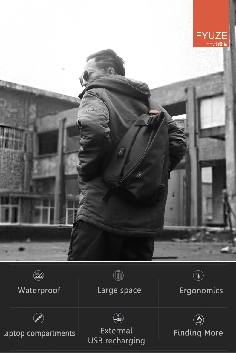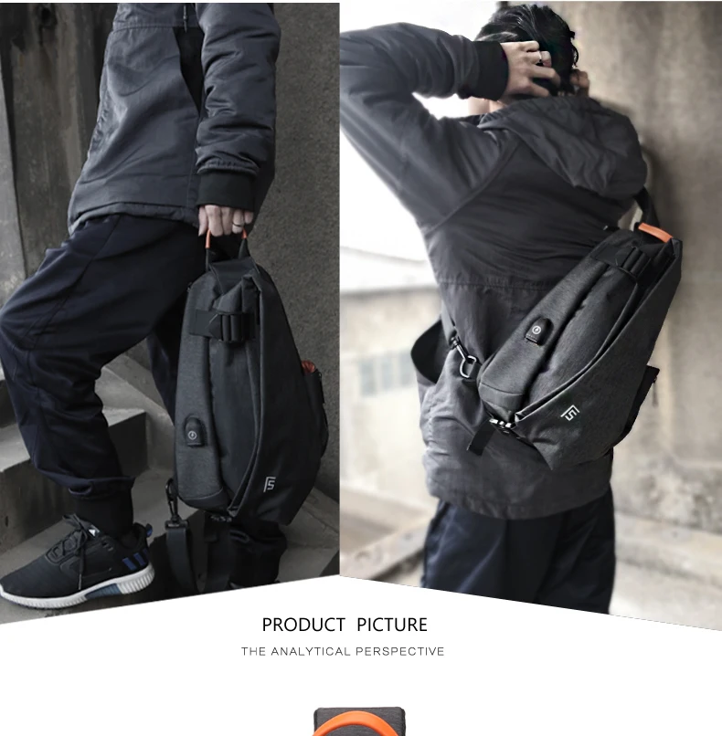 FYUZE New Men's Shoulder bag for male Waterproof Crossbody USB Charge bag Casual racket bag chest pack Summer Short Trip pocket