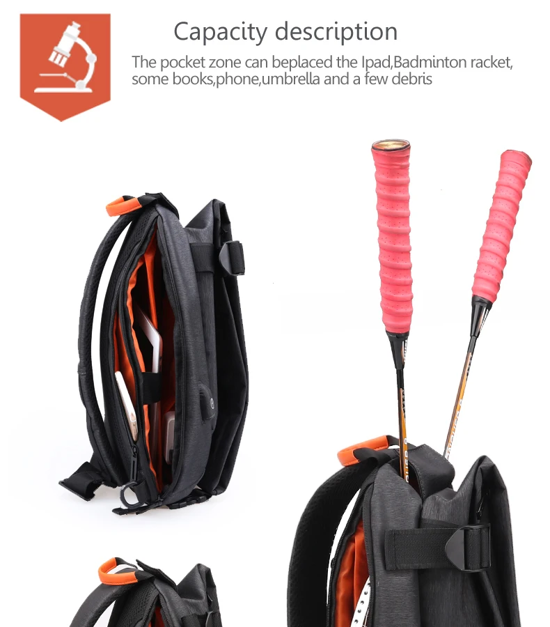 The pocket zone can beplaced the Ipad,Badminton racket,