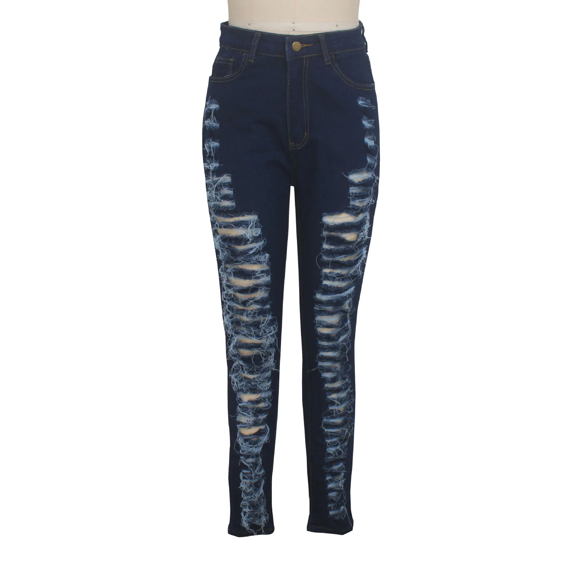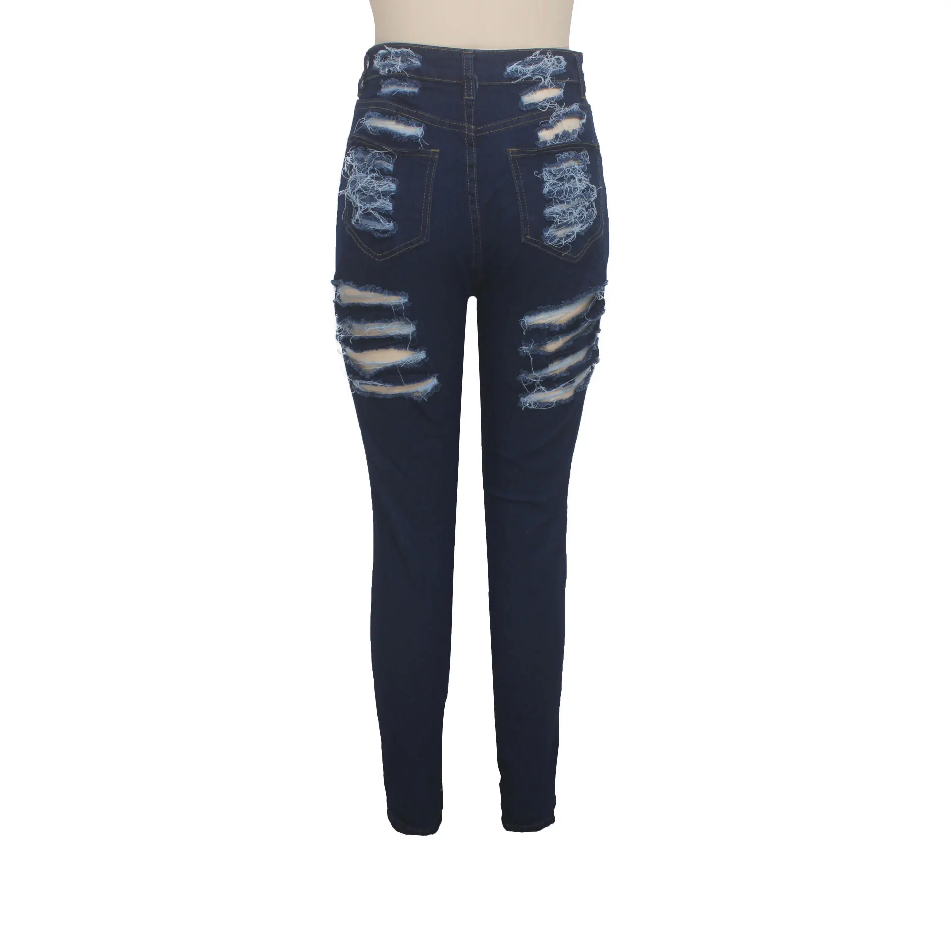 GBYXTY Sexy Ripped Holes Stretchy Jeans Streetwear High Waist Distressed Women Skinny Broken Denim Pencil Pants Trouser ZL602