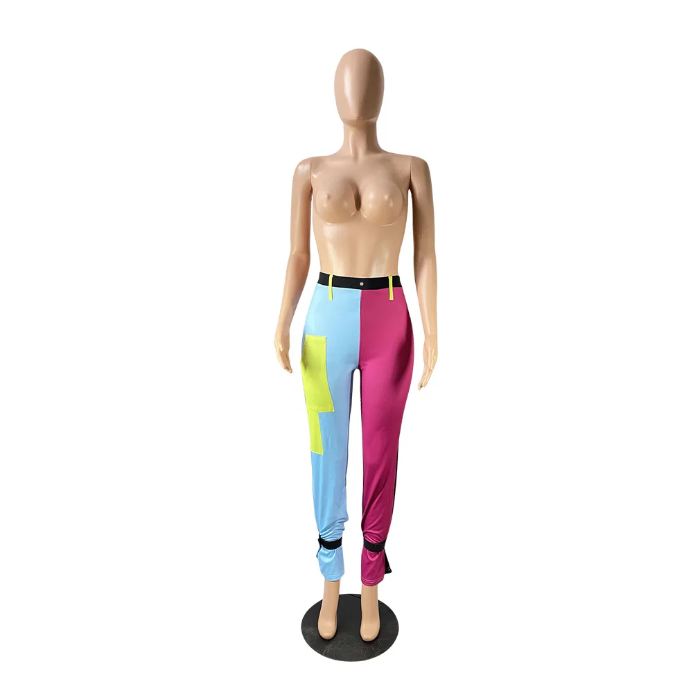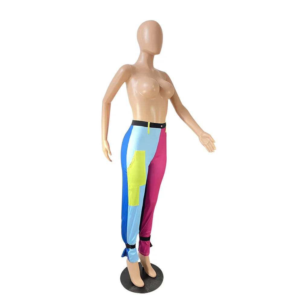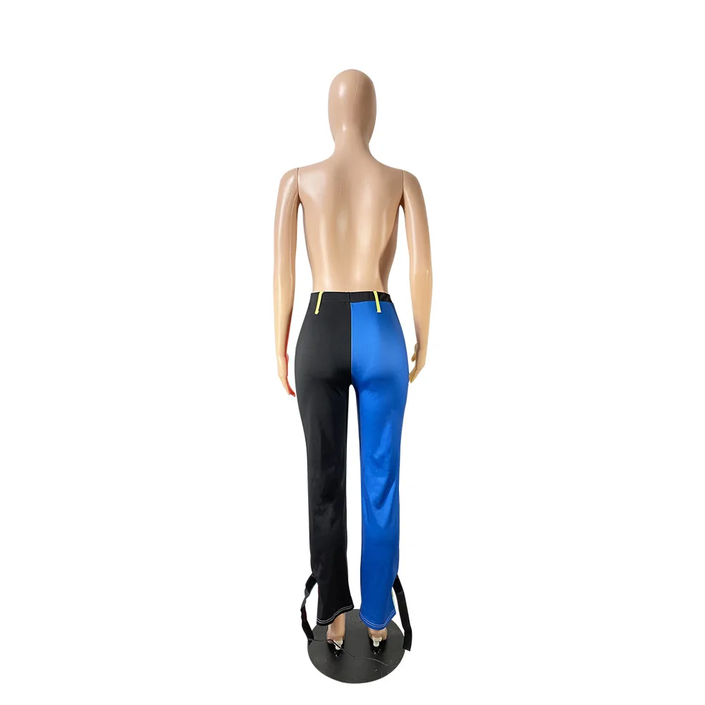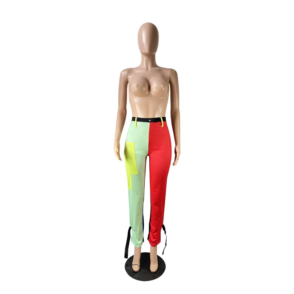 GBYXTY Streetwear Contrast Color Patchwork Bandage Beam Foot Pants Trousers Women Casual High Waist Straight Pants Bottom ZH909