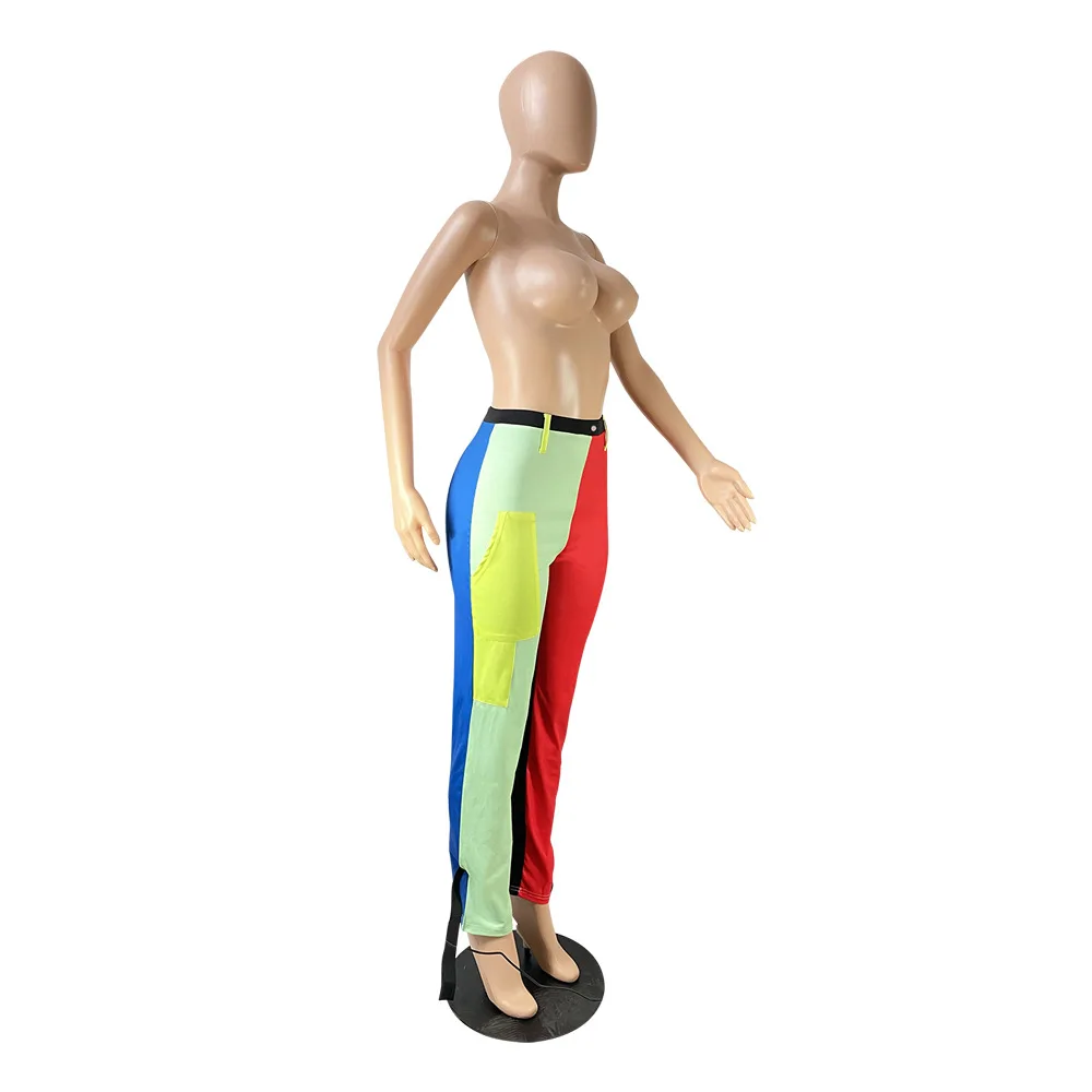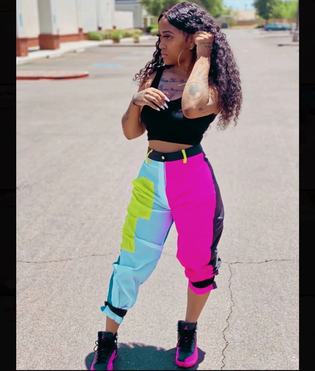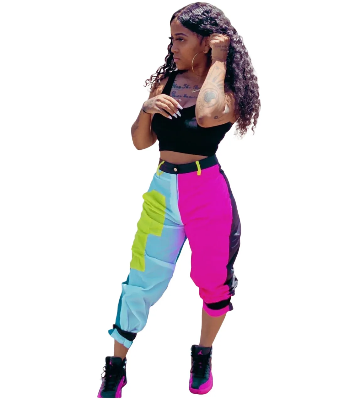 GBYXTY Streetwear Contrast Color Patchwork Bandage Beam Foot Pants Trousers Women Casual High Waist Straight Pants Bottom ZH909