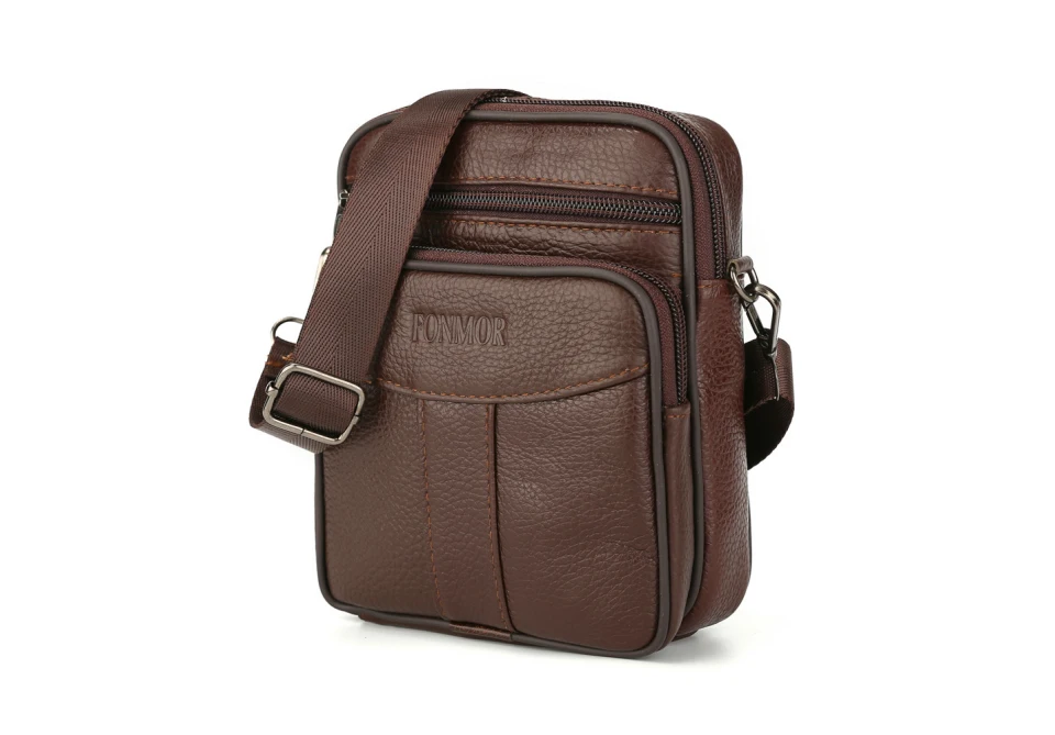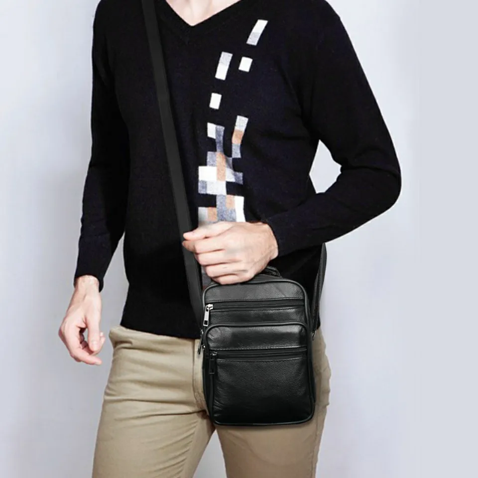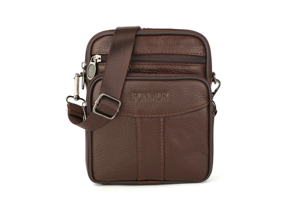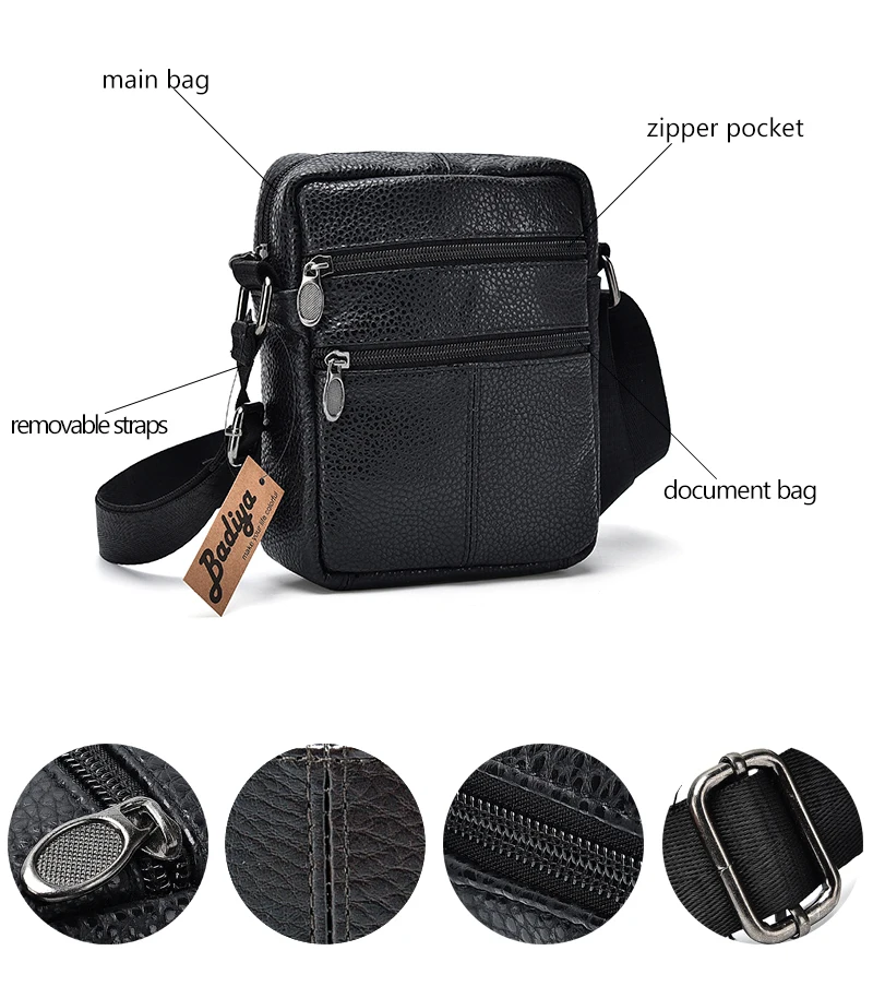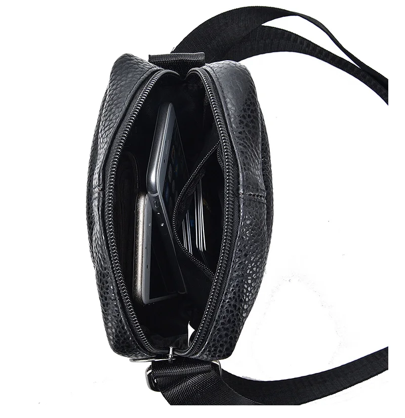 Genuine Leather Men Crossbody Bag Casual Single Shoulder Bag Adjustable Belt Pack