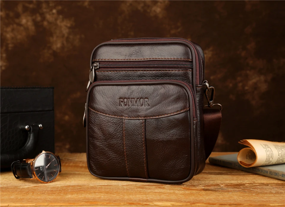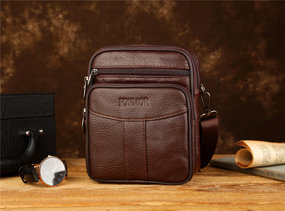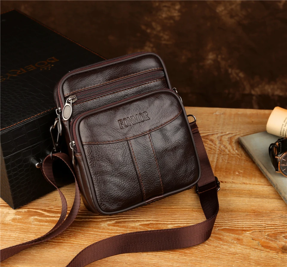 Genuine Leather Men Crossbody Bag Casual Single Shoulder Bag Business Working Notebook Pack Messenger Bags Male Flap Waist