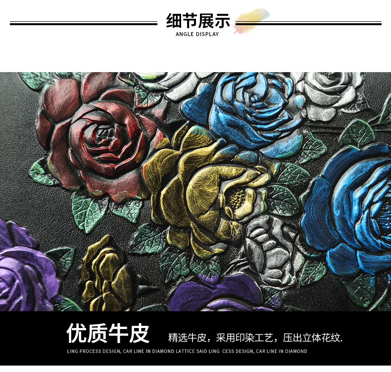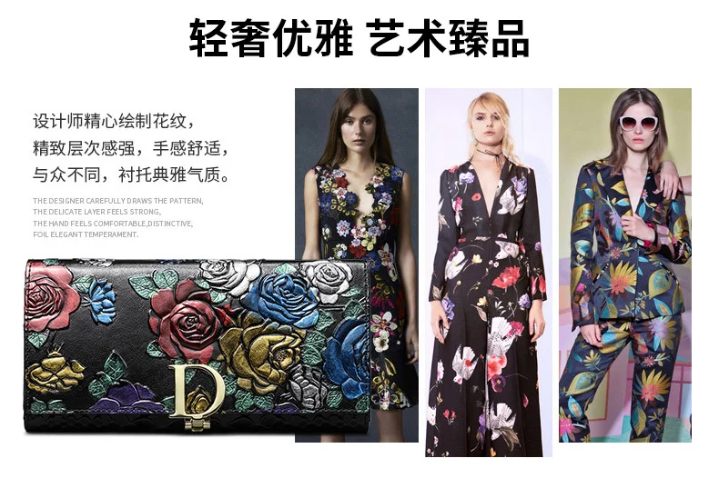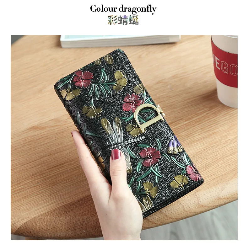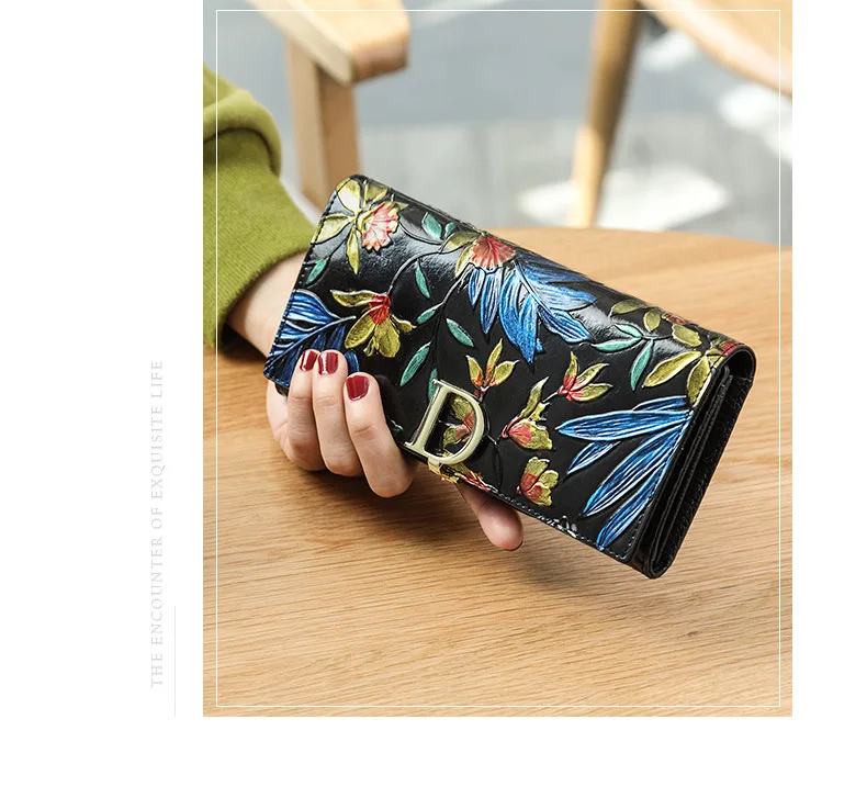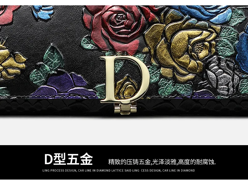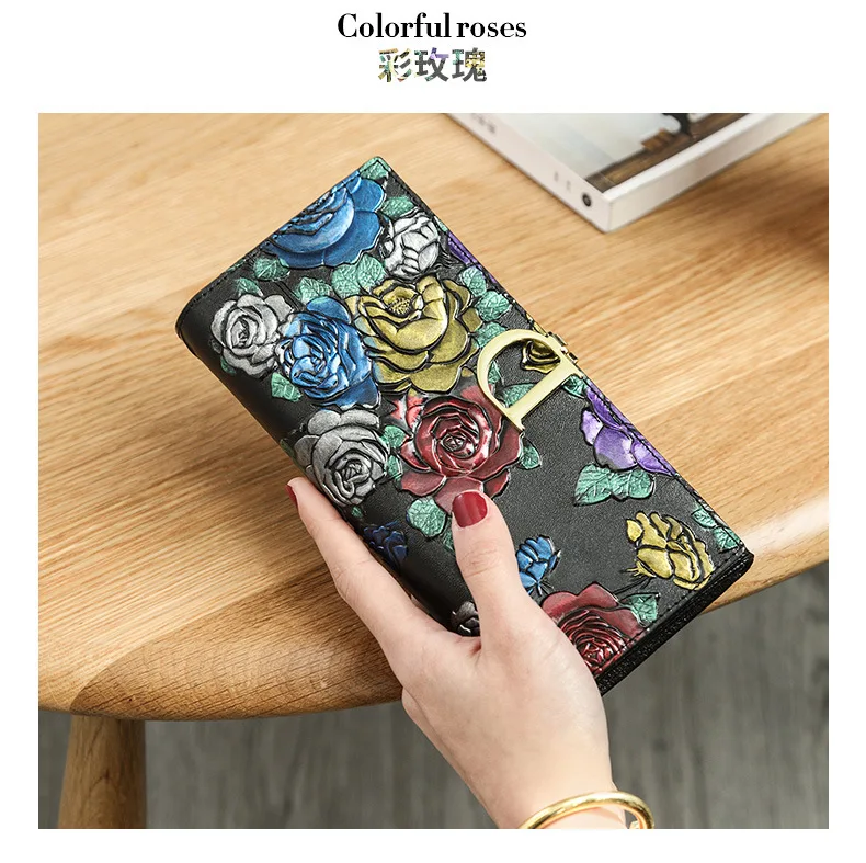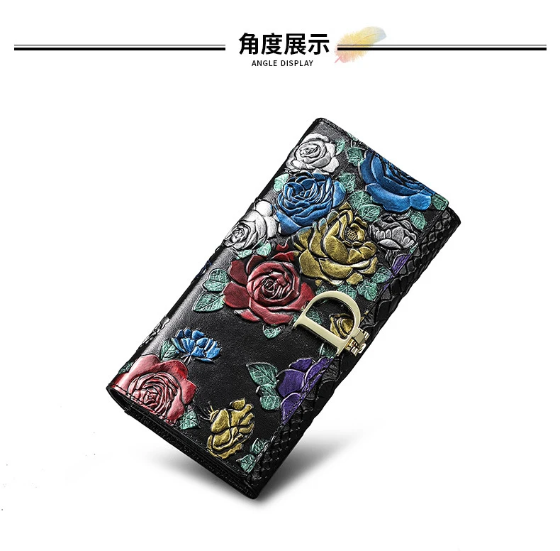 Genuine Leather Purse Wallet Female 3d Embossing Ladies Personality Retro Long Clutch Wallet Women Purse Coin Holders