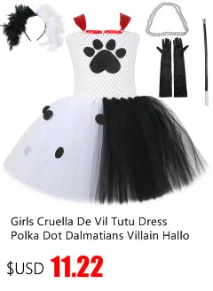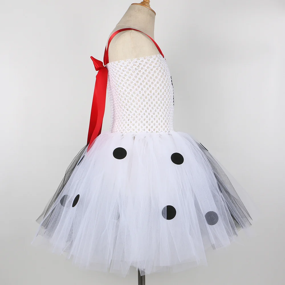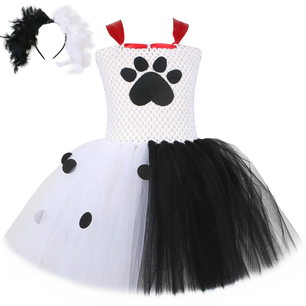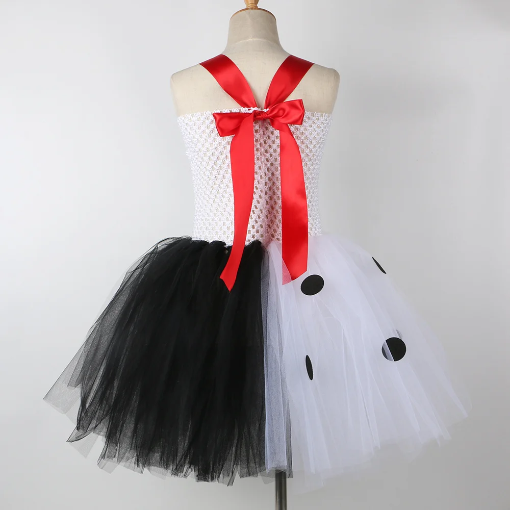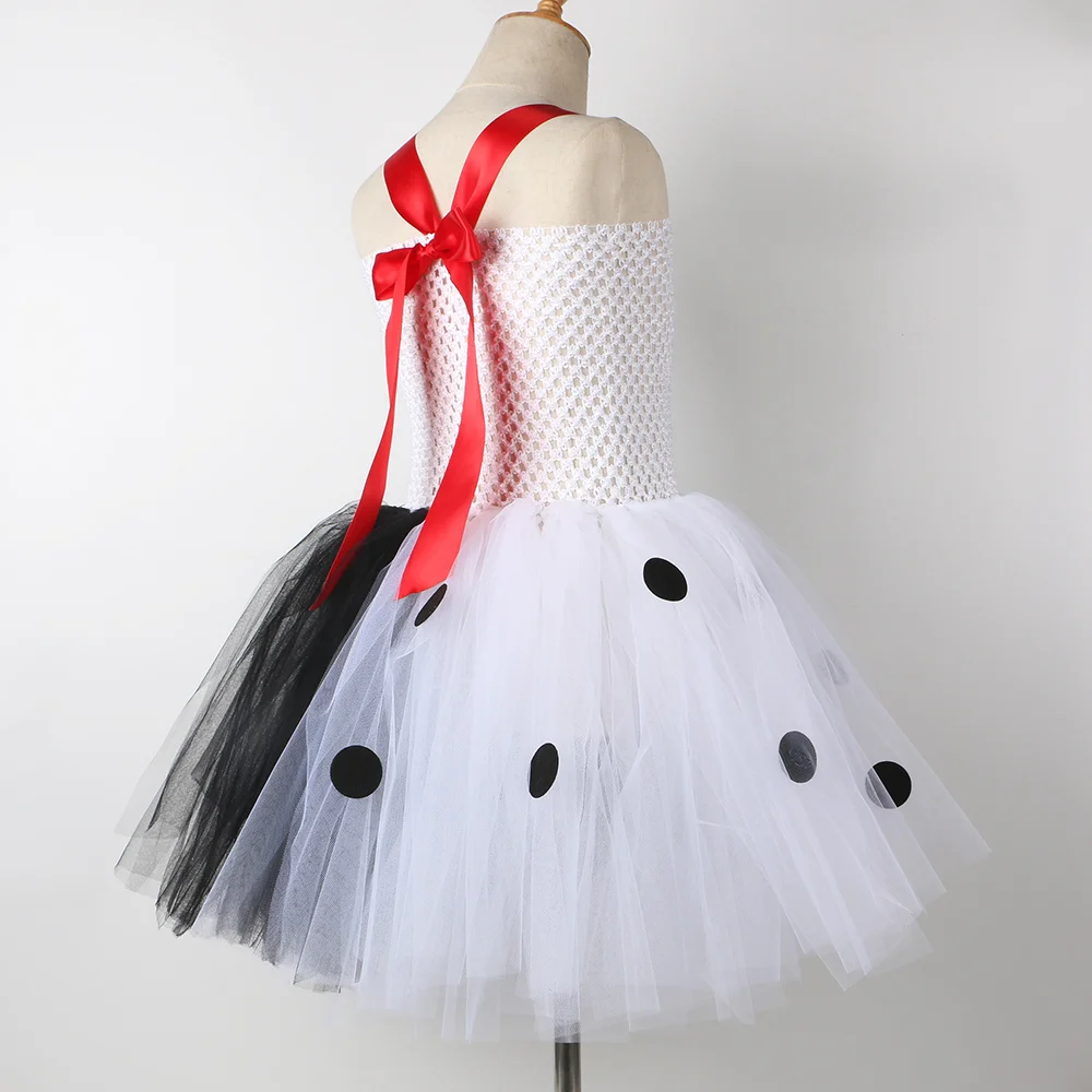 Girls Cruella De Vil Tutu Dress Polka Dot Dalmatians Villain Halloween Costume for Kids Fancy Carnival Party Clothes Outfit 1-12