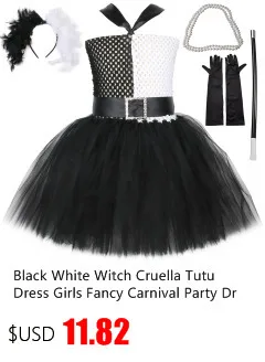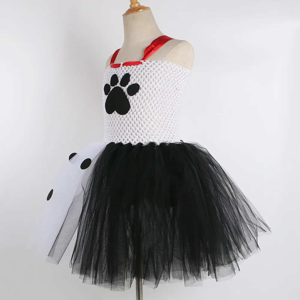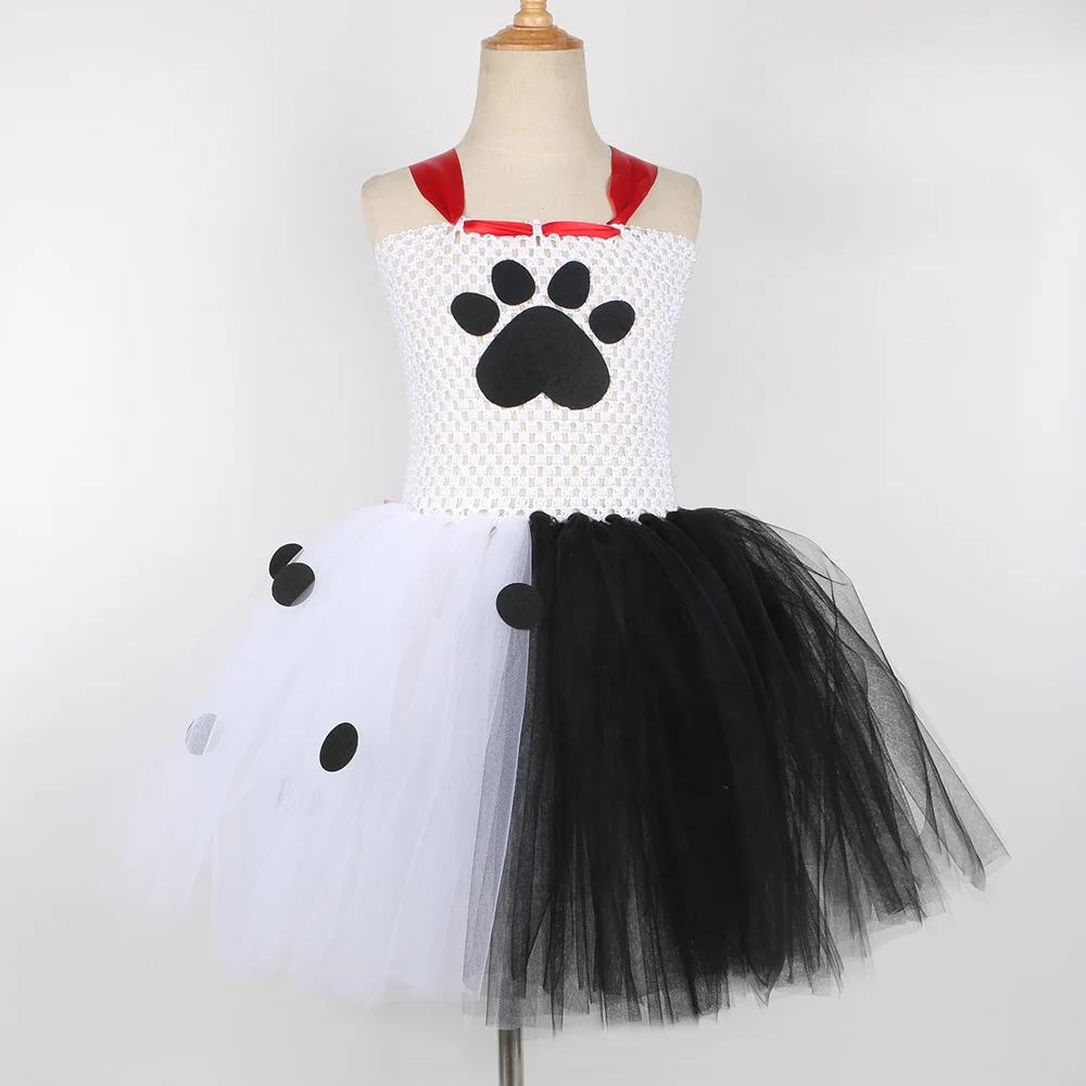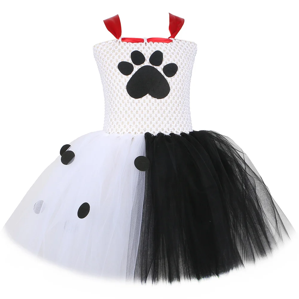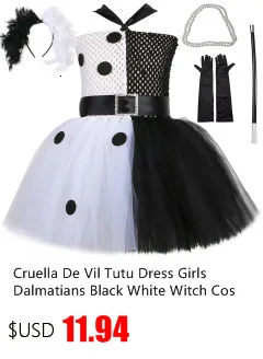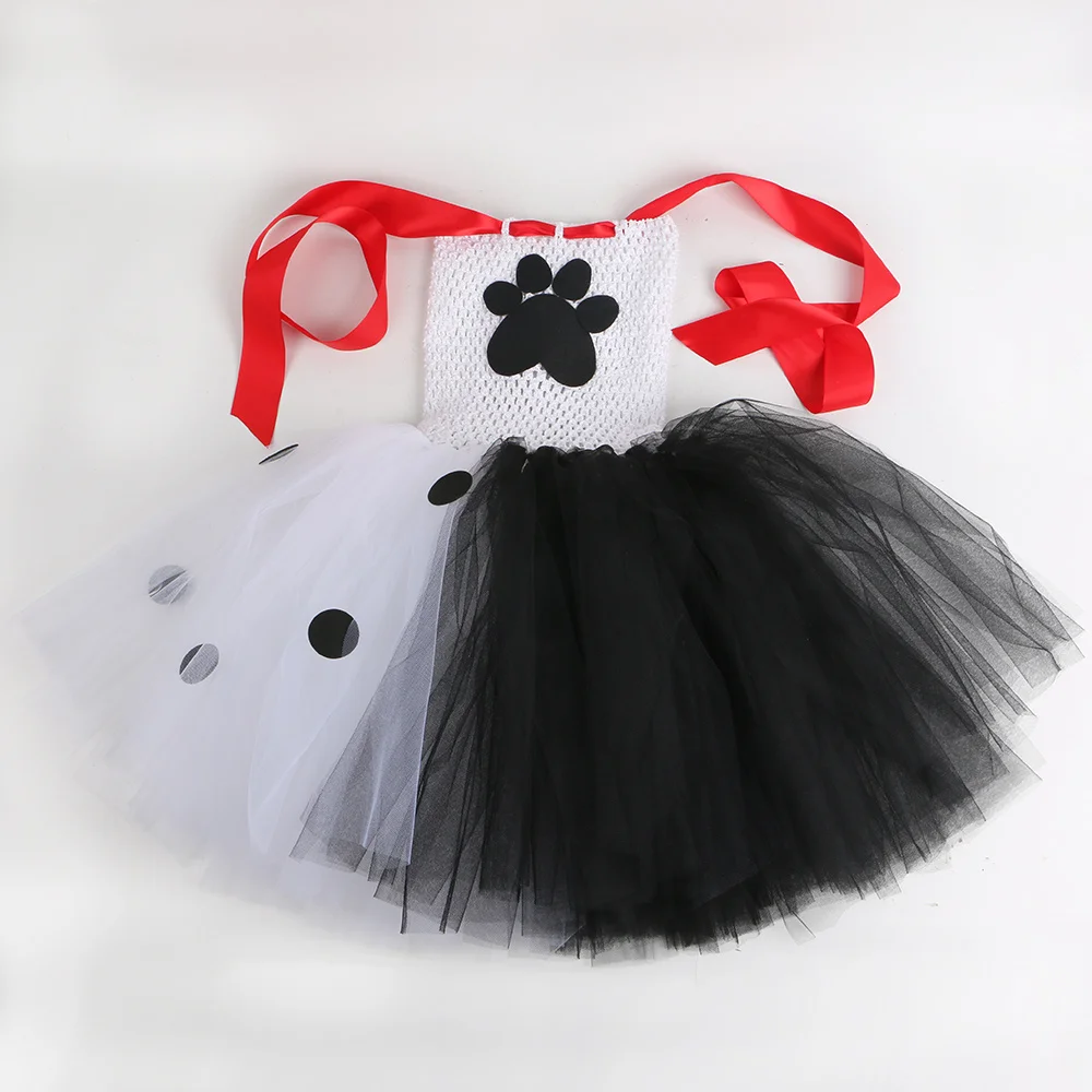 Girls Cruella De Vil Tutu Dress Polka Dot Dalmatians Villain Halloween Costume for Kids Fancy Carnival Party Clothes Outfit 1-12