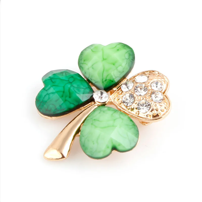Green Four Leaf and Rhinestones Lapel Pins or Brooches for Women or Men In Assorted Designs Wedding Accessories Gift